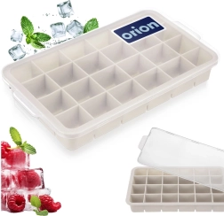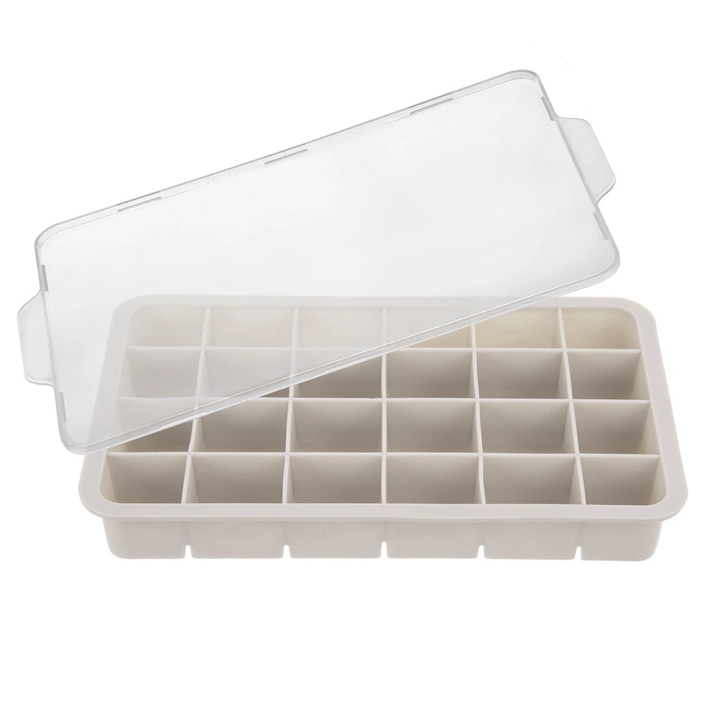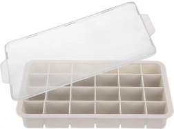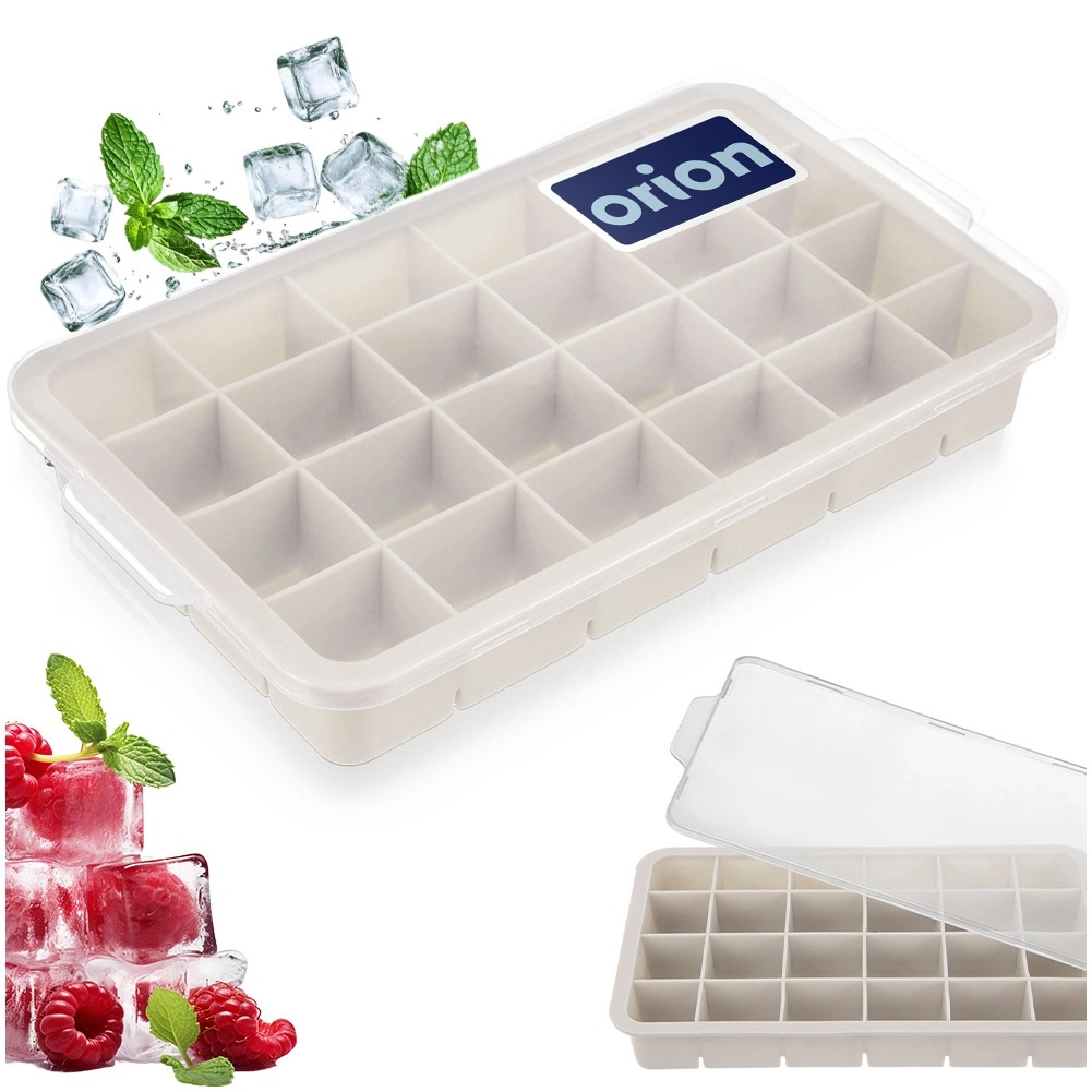 Questo stampo per ghiaccio beige in silicone con pratico coperchio è un ottimo alleato per l’uso quotidiano e per le feste. Produce fino a 24 cubetti regolari di circa 3,5 × 3 cm, che raffreddano rapidamente le bevande e donano un aspetto fresco.