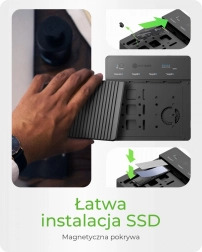 - Installazione senza attrezzi – coperchio magnetico per inserire ed estrarre facilmente i dischi.
