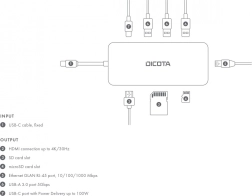 Il compatto hub USB‑C 8in1 di DICOTA amplia la connettività del tuo notebook o tablet con HDMI fino a 4K/30 Hz, Ethernet Gigabit, 3× USB‑A 3.0, USB‑C con Power Delivery 100 W e lettori SD/microSD. Offre plug and play senza installazione, trasferimenti rapidi e rete stabile in un elegante corpo in alluminio.