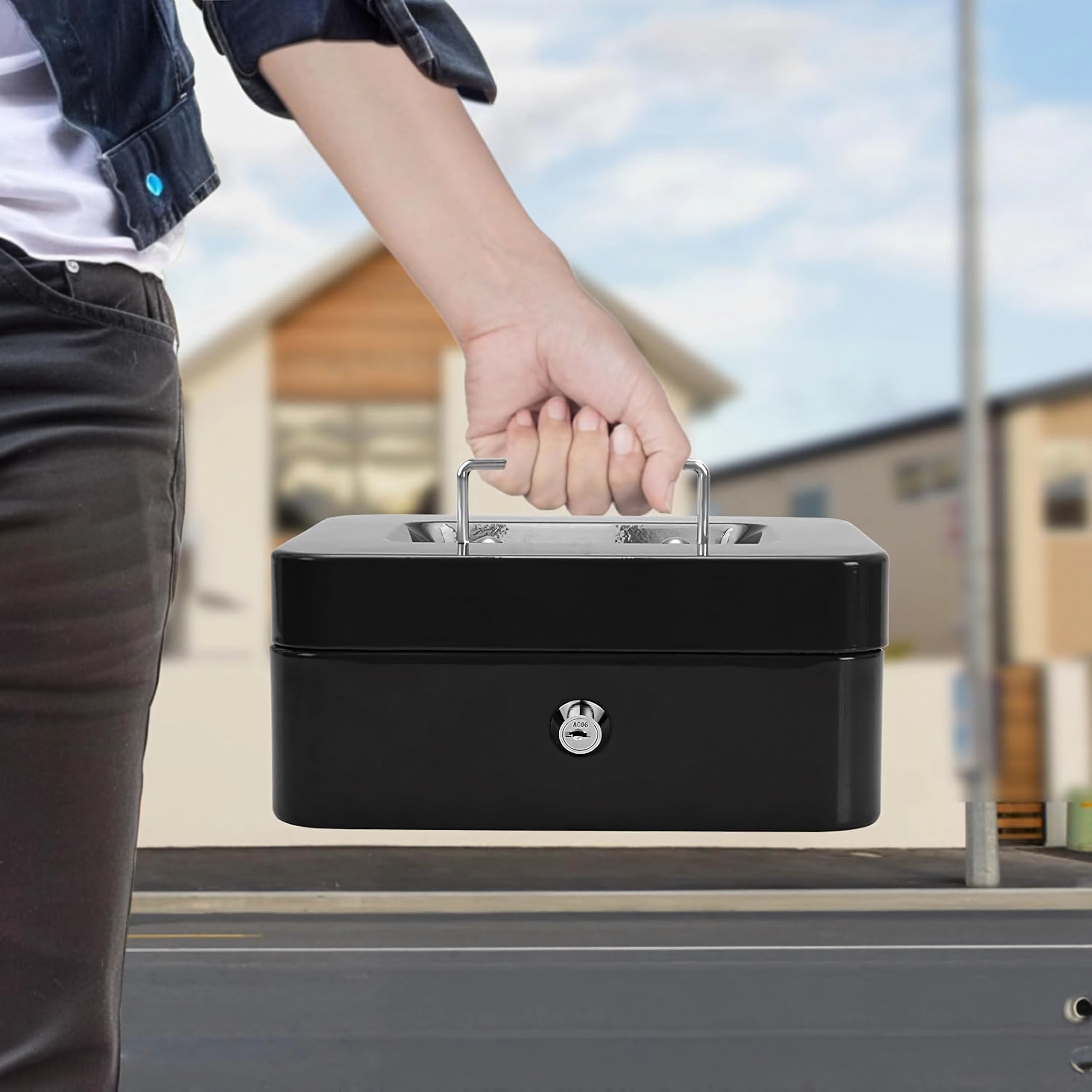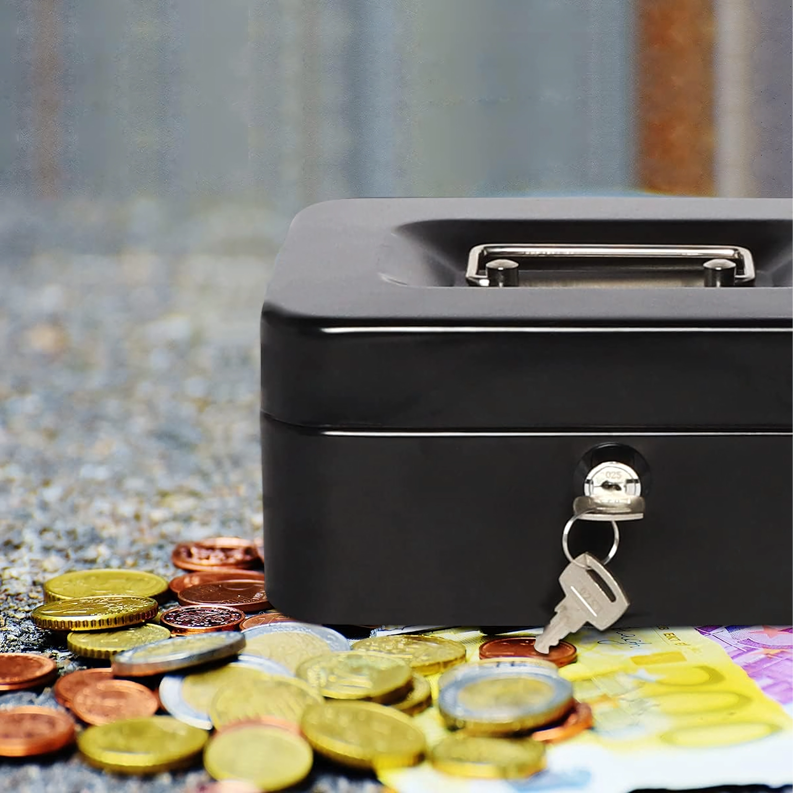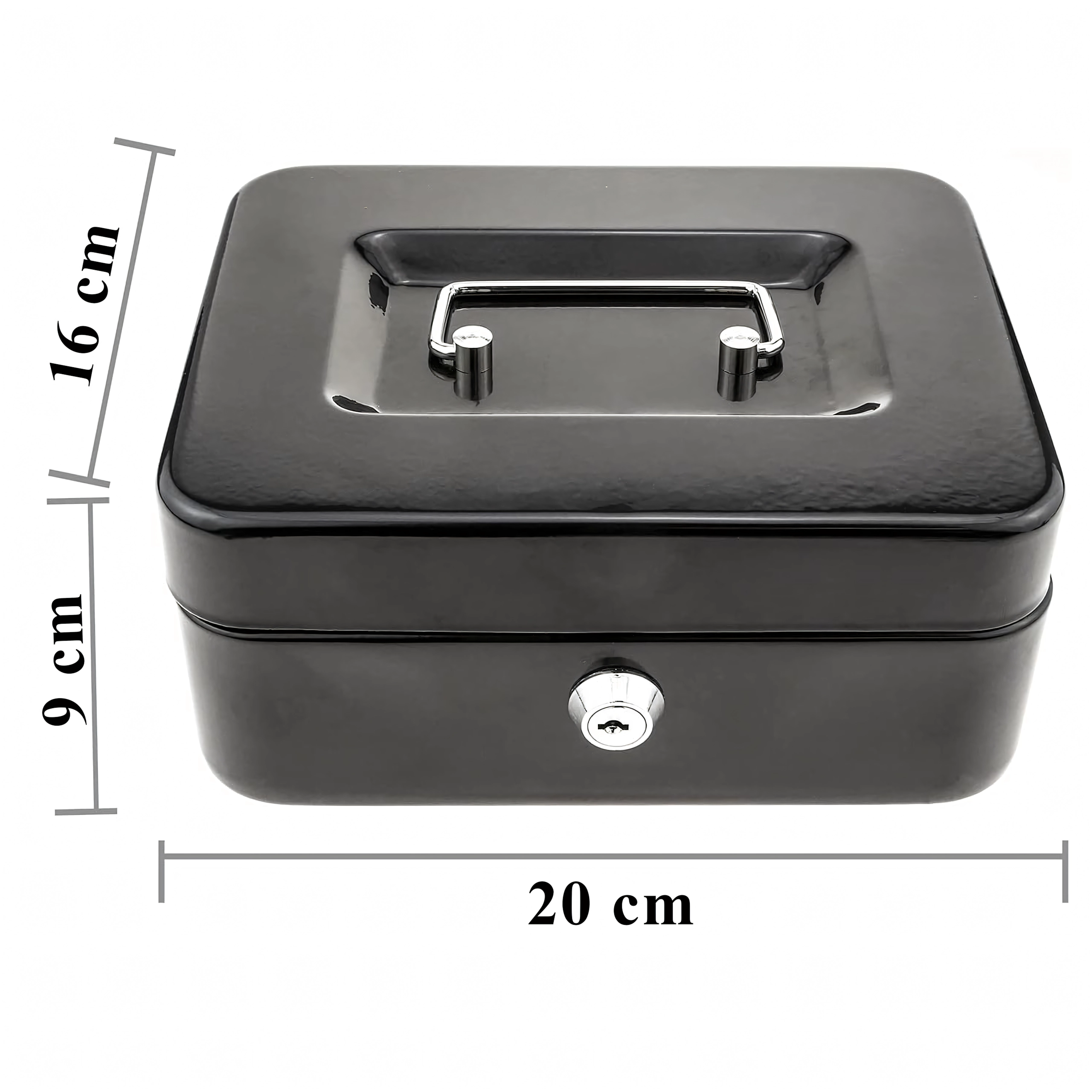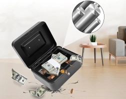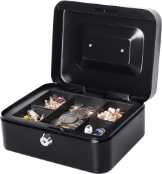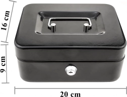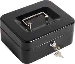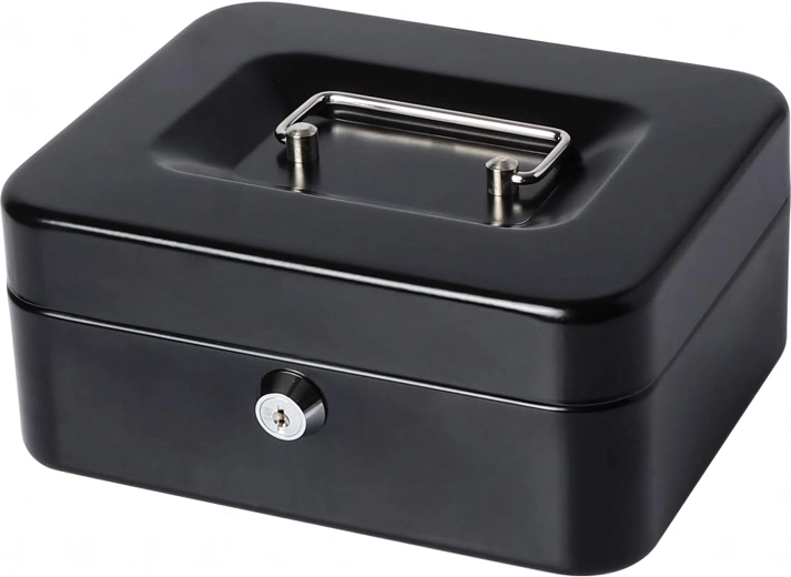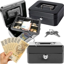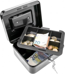 Compatta cassetta portadenaro in metallo con serratura a chiave, ideale per il deposito sicuro di contanti, ricevute, monete e banconote e piccoli documenti. Grazie all'organizer estraibile con scomparti è facile ordinare gli spiccioli, mentre la robusta struttura in metallo e la comoda maniglia assicurano trasporto agevole e resistenza nell'uso quotidiano.