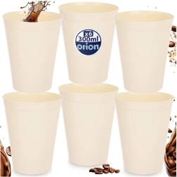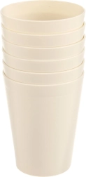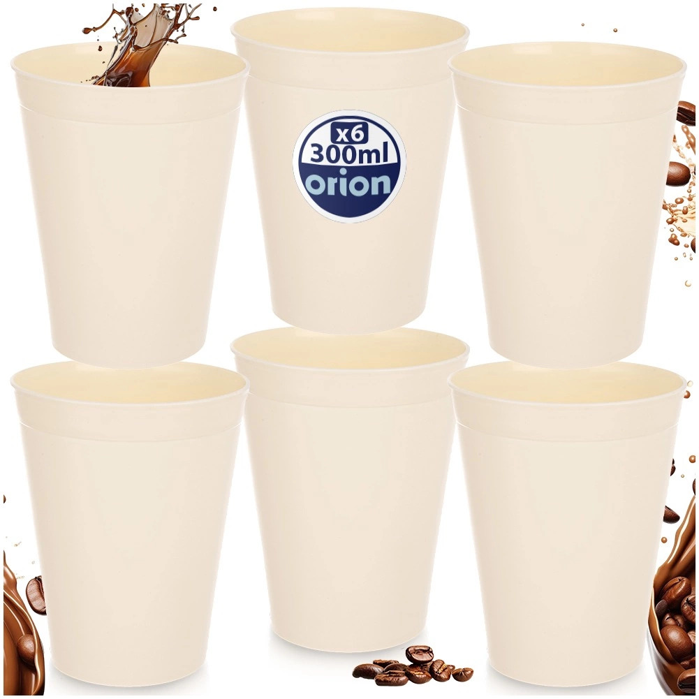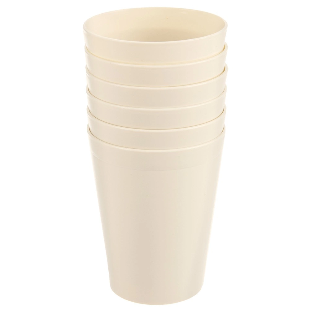 Pratico set di sei bicchieri leggeri e resistenti da 300 ml, ideale per l'uso quotidiano in casa e all'aperto. Adatti per bevande fredde e calde, per microonde e lavastoviglie. Il robusto materiale plastico nel colore crema fa risparmiare spazio grazie alla forma impilabile – perfetti per picnic, campeggio e momenti in giardino.