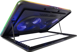 Potente base di raffreddamento TRACER GameZone Snowman Pro 17" con ventole doppie, illuminazione RGB e 6 livelli di inclinazione mantiene il tuo notebook fresco e garantisce un'ergonomia confortevole. Offre display con velocità delle ventole, 2 porte USB, funzionamento silenzioso a 25 dBA e forte flusso d'aria di 45 CFM per prestazioni stabili durante lavoro e gioco.
