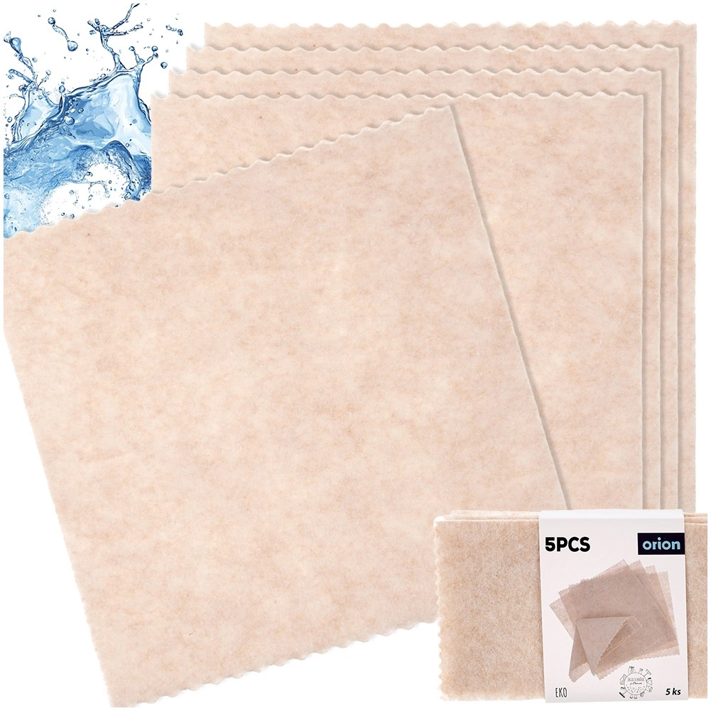 Pratico set di cinque panni da cucina ecologici per tutta la casa. Realizzati con una combinazione di fibre naturali e poliestere riciclato, offrono alta assorbenza, resistenza e una pulizia delicata ma efficace senza aloni. Ideali per cucina, bagno e superfici sensibili – per una pulizia sostenibile senza chimica.