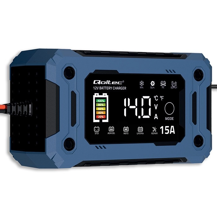 Prolunga la vita della tua batteria con un caricabatterie intelligente controllato da microprocessore. Rileva automaticamente il tipo di accumulatore, adatta la curva di carica e dopo la ricarica completa passa alla modalità mantenimento, evitando il sovraccarico. Il grande display LCD mostra tensione, corrente, stato di carica e modalità selezionata, mentre il tasto touch MODE semplifica il controllo.