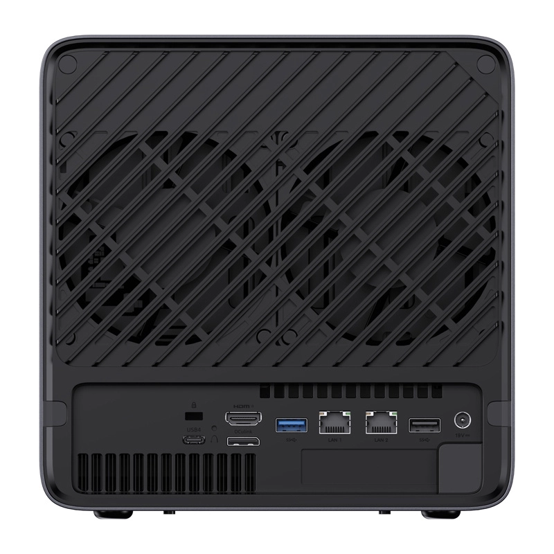 - 1 × USB4 (Alt DP 2.0), 1 × HDMI 2.1 FRL, 1 × OCuLink, 1 × 10 GbE RJ45, 1 × 5 GbE RJ45, 1 × USB 3.2 Gen 2, 1 × USB 2.0