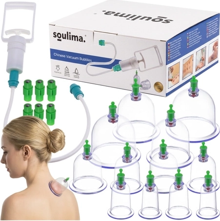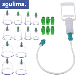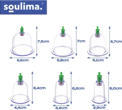 Il set di coppette sottovuoto SOULIMA è una soluzione pratica per la coppettazione domestica senza fiamma. Grazie alla pompetta manuale puoi regolare facilmente il vuoto, garantendo una terapia più sicura e precisa. Le diverse dimensioni permettono di trattare sia aree muscolari ampie che zone più piccole e sensibili. Gli accessori magnetici supportano la stimolazione mirata dei punti di digitopressione.