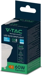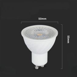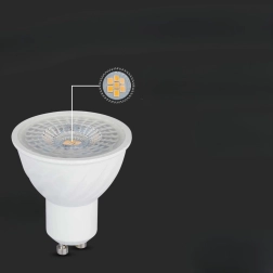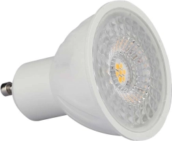 Lampadina LED GU10 6W V‑TAC a risparmio energetico con luce bianca calda 3000K e flusso luminoso di 445 lm, ideale come sostituzione delle alogene. Offre un ampio angolo di emissione di 110°, lunga durata e funzionamento affidabile grazie ai chip SAMSUNG.