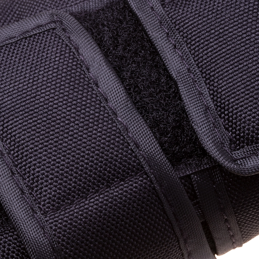 Cinghie elastiche con velcro permettono un’indossabilità rapida, una regolazione precisa e una tenuta sicura delle protezioni senza scivolare.