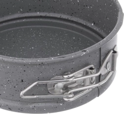 Pratica teglia piccola, ideale per cuocere mini torte, cheesecake e dessert freddi. Il rivestimento antiaderente in granito riduce al minimo il rischio di bruciature e facilita sia il servizio sia la pulizia. Il bordo apribile con chiusura e il fondo rimovibile assicurano un’estrazione agevole anche delle basi più delicate.