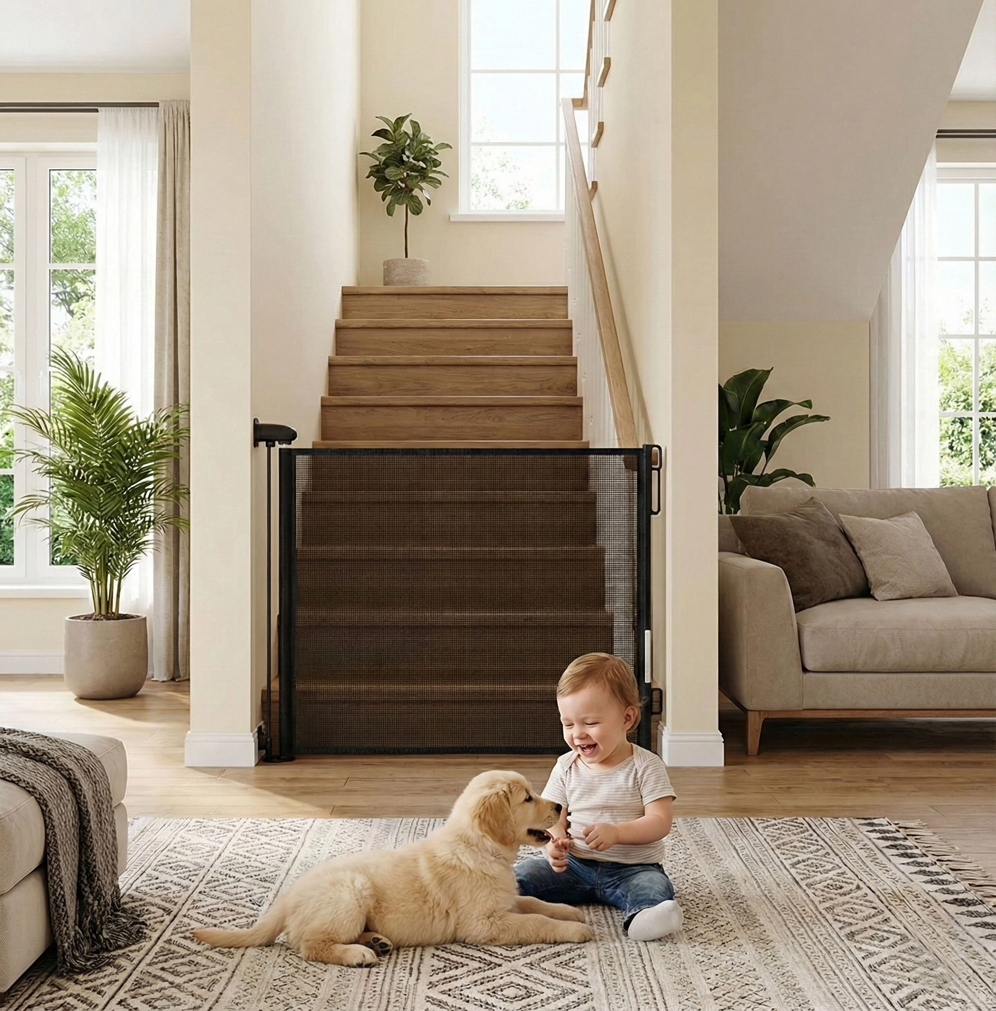 La barriera di sicurezza ECOTOYS è ideale per scale, passaggi delle porte e zone aperte più ampie. Grazie al meccanismo avvolgibile, una volta sbloccata si arrotola con fluidità e occupa spazio minimo, perfetta per appartamenti e case. La larghezza regolabile fino a 160 cm consente un’installazione flessibile, mentre il comando semplice con una sola mano è un plus nell’uso quotidiano.
