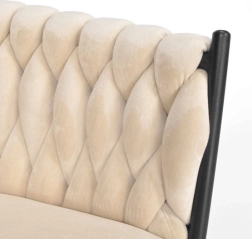 Il punto di forza è la imbottitura intrecciata 3D dello schienale, che ricorda un trapuntato decorativo e colpisce in sala da pranzo, in soggiorno e anche davanti alla toeletta. La seduta ergonomica, lo schienale di supporto e i braccioli garantiscono comfort per tutto il giorno.
