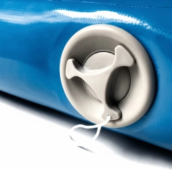 La valvola pratica consente il gonfiaggio in circa 3–4 minuti e uno sgonfiaggio altrettanto veloce. La durezza si regola facilmente con la quantità d’aria e la pressione.