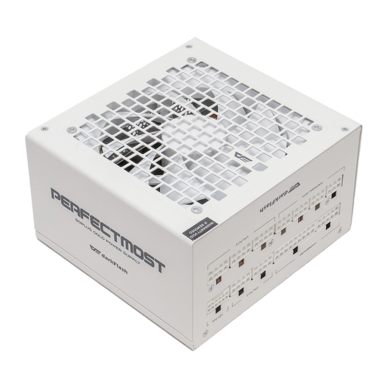 DarkFlash PMT1050 è un alimentatore compatto ed efficiente (140 × 150 × 86 mm), progettato per configurazioni esigenti con elevati requisiti di stabilità e purezza dell'alimentazione. Grazie allo standard ATX 3.1 e all'interfaccia PCIe 5.1 con cavo 12V-2×6 fino a 600 W, alimenta in modo affidabile anche le schede grafiche più recenti, incluse configurazioni multi-GPU. La certificazione 80 PLUS Gold garantisce alta efficienza, minore riscaldamento e costi di esercizio ridotti.