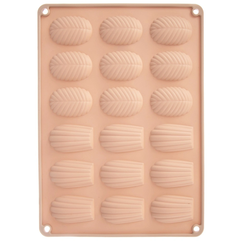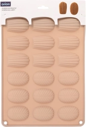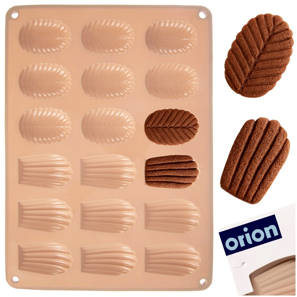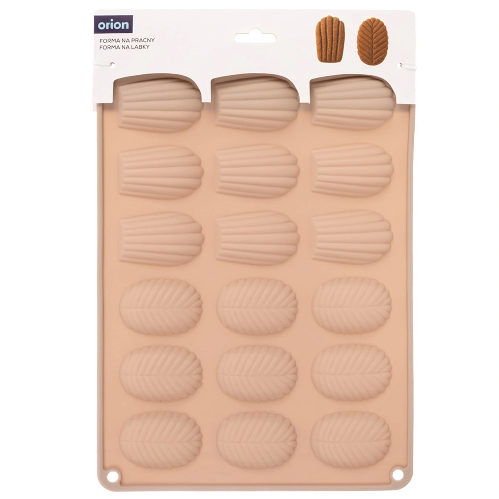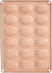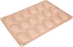 Pratico stampo in silicone color beige per preparare fino a 18 pezzi di biscotti fatti in casa, praline e cioccolatini a forma di conchiglie (madeleine) e foglie. Grazie al silicone flessibile antiaderente i dolci si sformano facilmente; lo stampo è resistente da −40 °C a +200 °C, adatto a forno, microonde e freezer e lavabile in lavastoviglie.