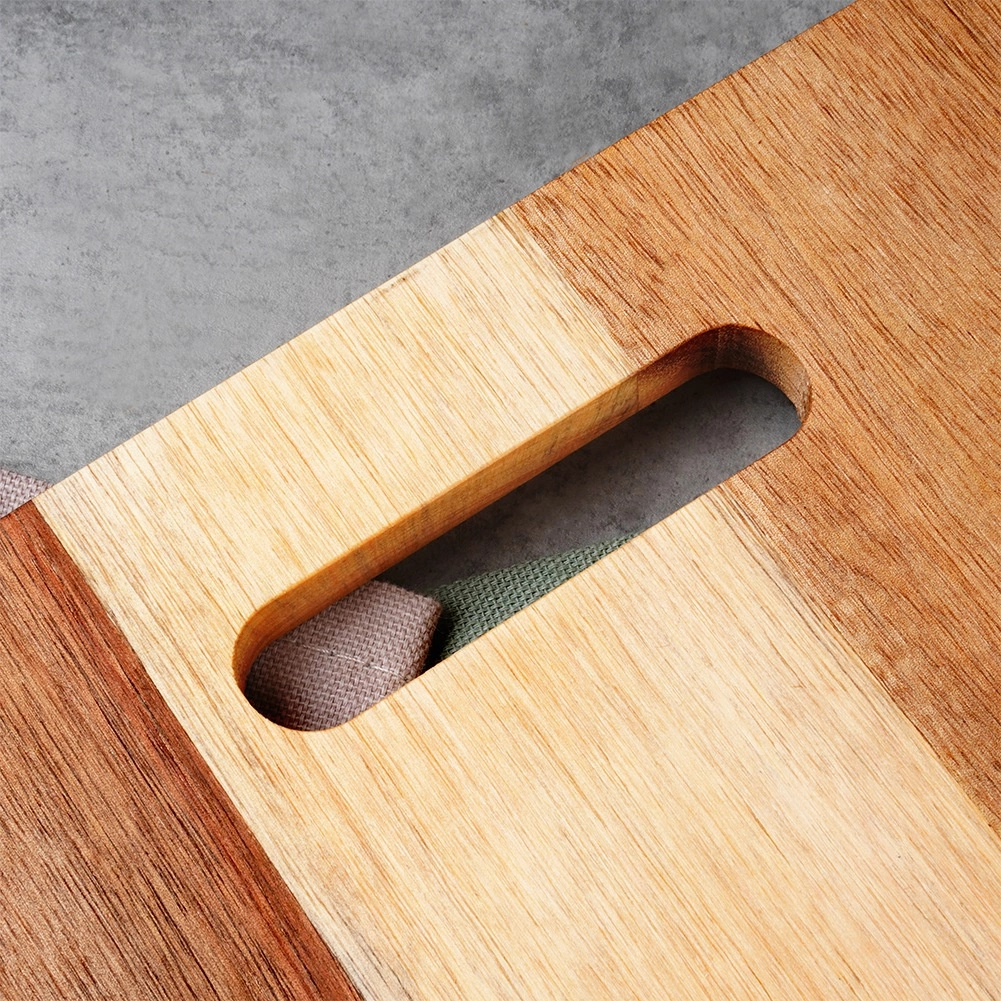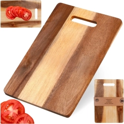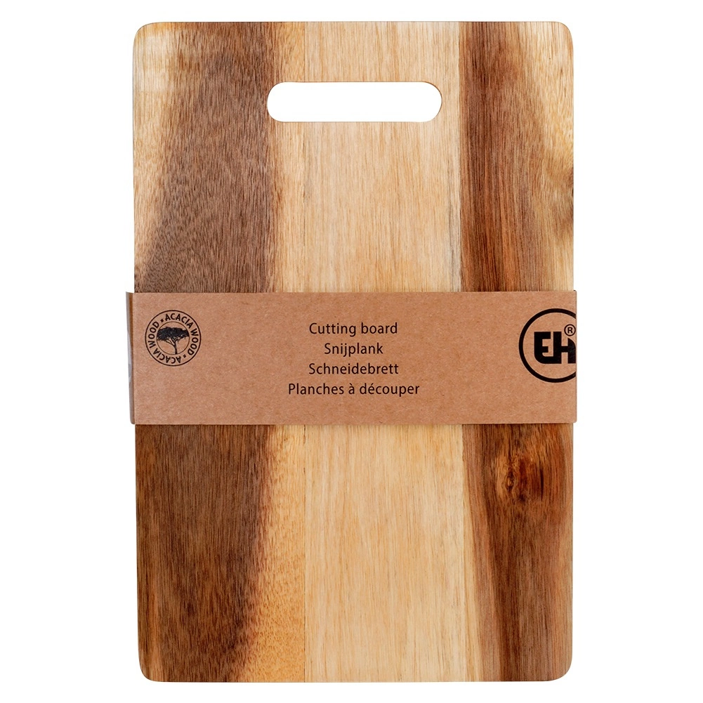Concedi alla tua cucina un tagliere di legno di acacia, rinomato per durezza, resistenza e splendida venatura naturale. Le dimensioni 30 × 20 cm e lo spessore di 1 cm garantiscono una superficie stabile e confortevole per tagliare carne, verdura, frutta e pane. Il manico integrato agevola il trasporto e consente anche di appenderlo.