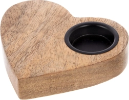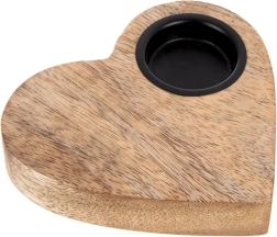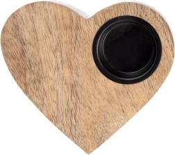 Elegante portacandela a forma di cuore in legno naturale di mango che dona all’ambiente un’atmosfera accogliente e una luce romantica. L’inserto in metallo mantiene in sicurezza la candela tealight fino a un diametro di 4 cm. Perfetto su comò, tavolo o davanzale, si abbina facilmente a accessori naturali e metallici.