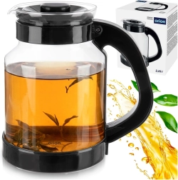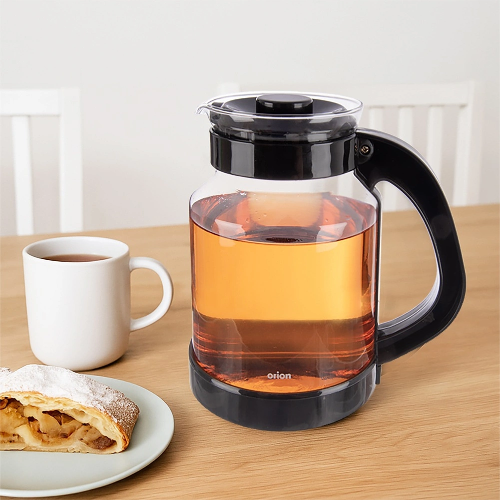 La caraffa in vetro ORION da 2,25 l è ideale per preparare bevande calde come tè, caffè o infusi alle erbe, e per servire bevande fredde, succhi e acqua. Il corpo trasparente consente di controllare facilmente quantità e intensità della bevanda, mentre il coperchio protegge il contenuto dalla polvere e aiuta a mantenere la temperatura.