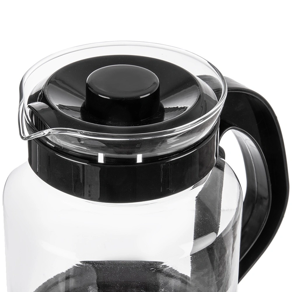 La caraffa è realizzata in vetro borosilicato resistente alle alte temperature, completata da un comodo manico e coperchio in plastica di colore nero. Grazie al beccuccio ben studiato, il versamento è fluido e senza gocce, e il manico ergonomico assicura una presa salda senza rischio di scottature.