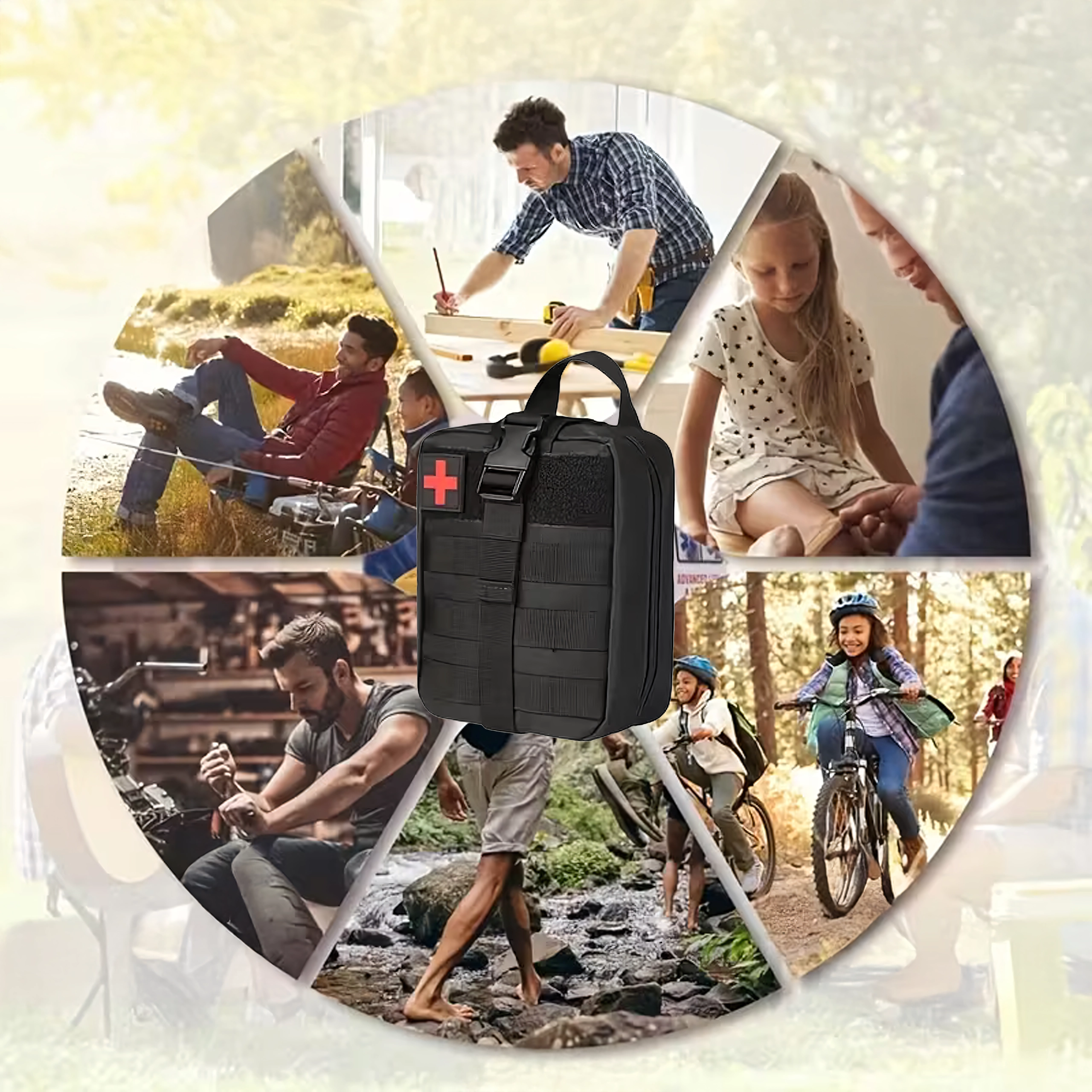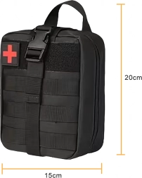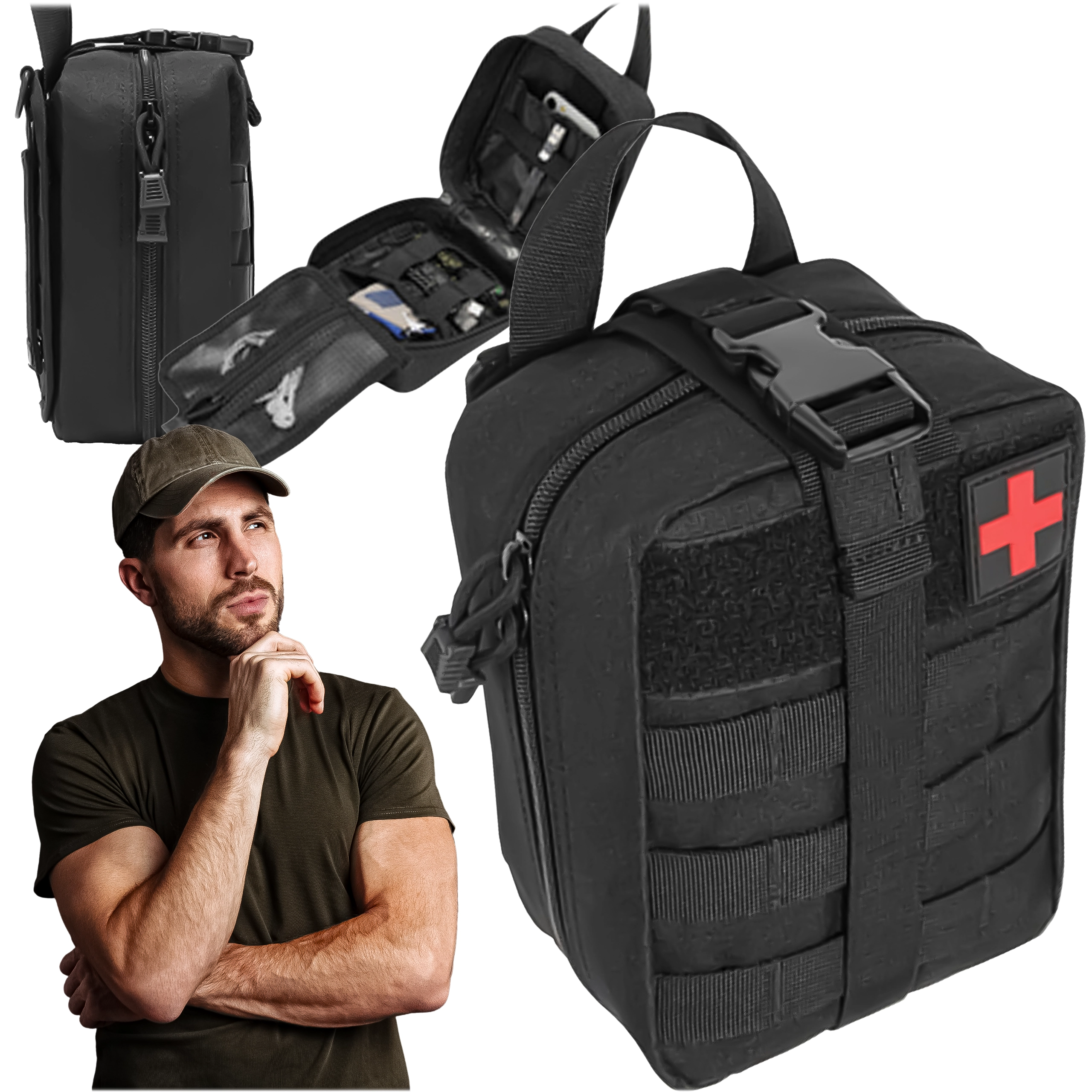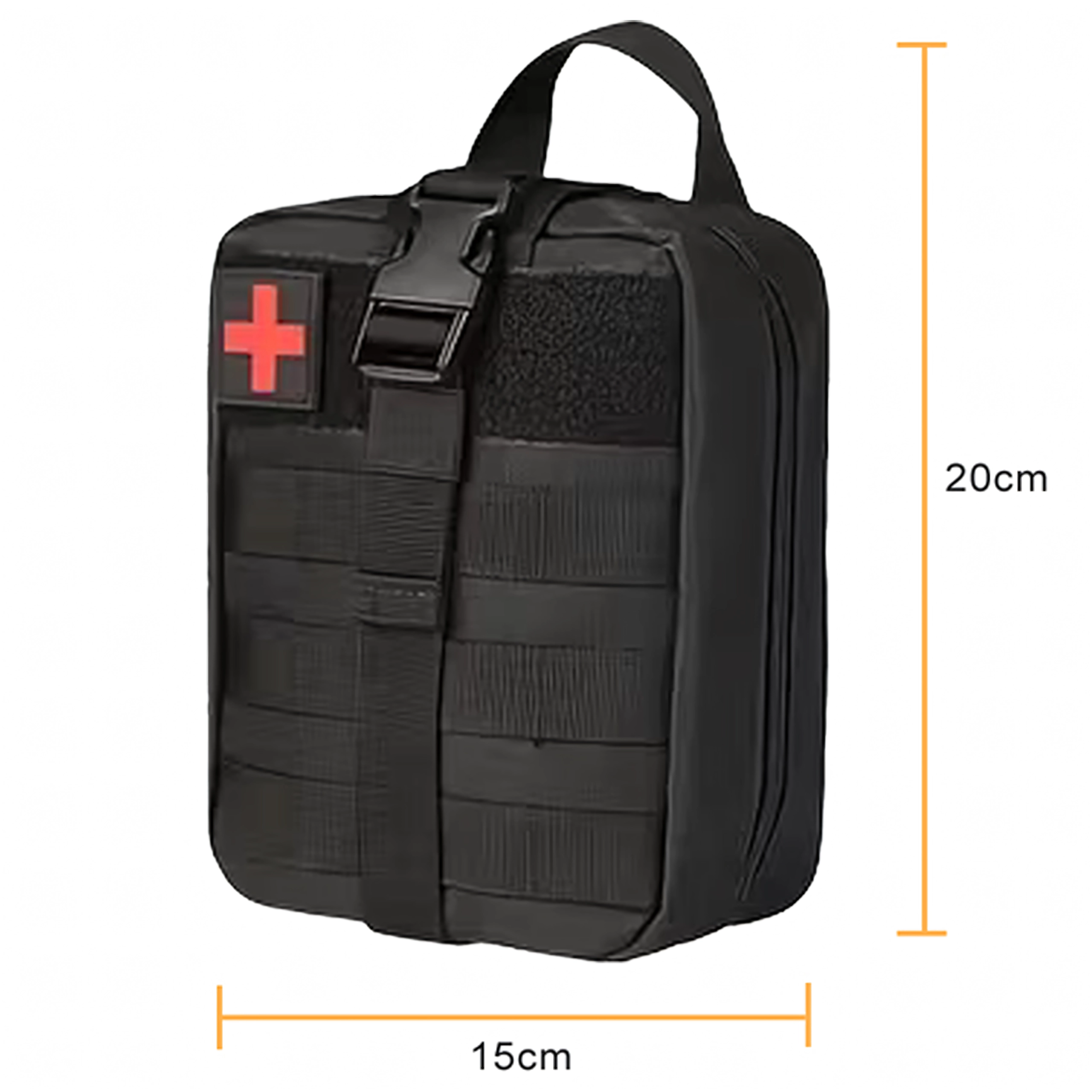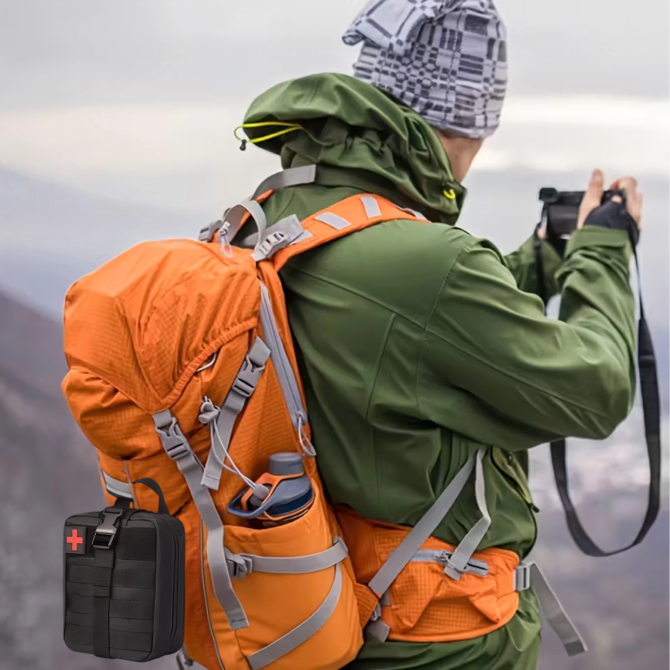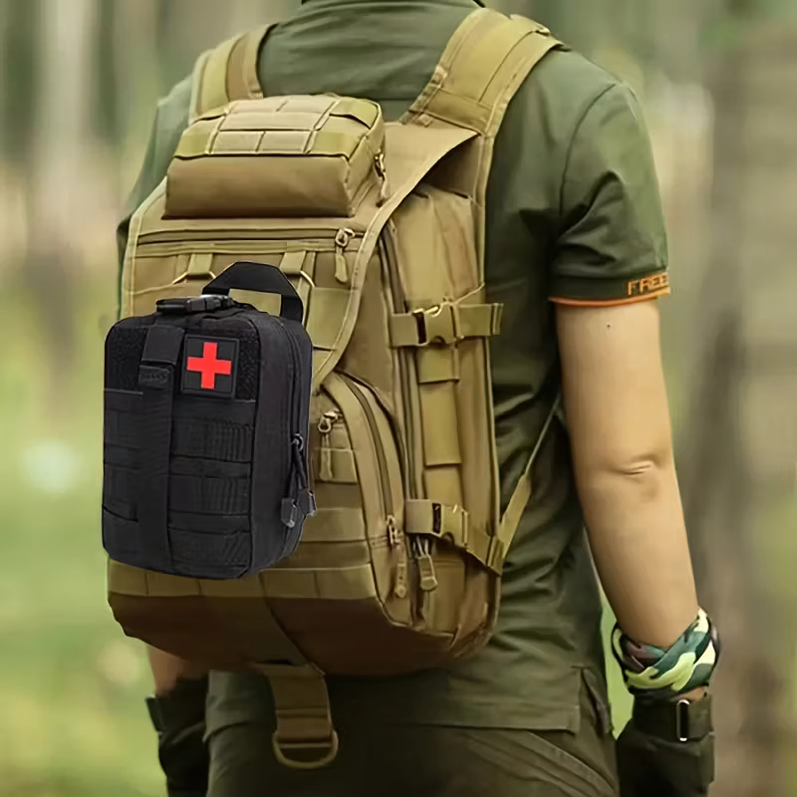 Compatto kit di pronto soccorso tattico pensato per trekking, campeggio, survival e uso quotidiano. Grazie al fissaggio MOLLE si aggancia facilmente a zaino, gilet o in auto. Struttura resistente, accesso rapido con zip e organizzazione interna chiara per trovare subito ciò che serve.