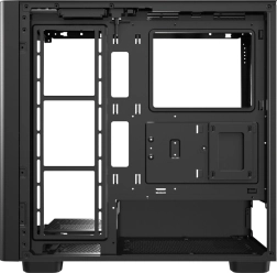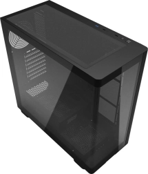 DarkFlash DS900G si distingue per il pannello laterale panoramico in vetro temperato che mette in risalto i componenti e l’illuminazione RGB. Il telaio è progettato con cura per un flusso d’aria ottimale e un’installazione semplice dei componenti, incluse schede grafiche fino a 425 mm e dissipatori CPU fino a 170 mm.