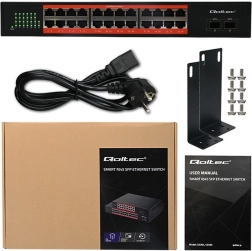 Espandi la tua rete con facilità e senza compromessi. Questo switch gigabit combina alte prestazioni con un’installazione semplice: 24 porte PoE RJ45 alimentano i dispositivi compatibili (telecamere, AP, VoIP) trasferendo al contempo i dati fino a 1 Gb/s. Le due porte SFP consentono collegamenti in fibra per tratte lunghe o tra edifici, garantendo un’implementazione flessibile e scalabile.
