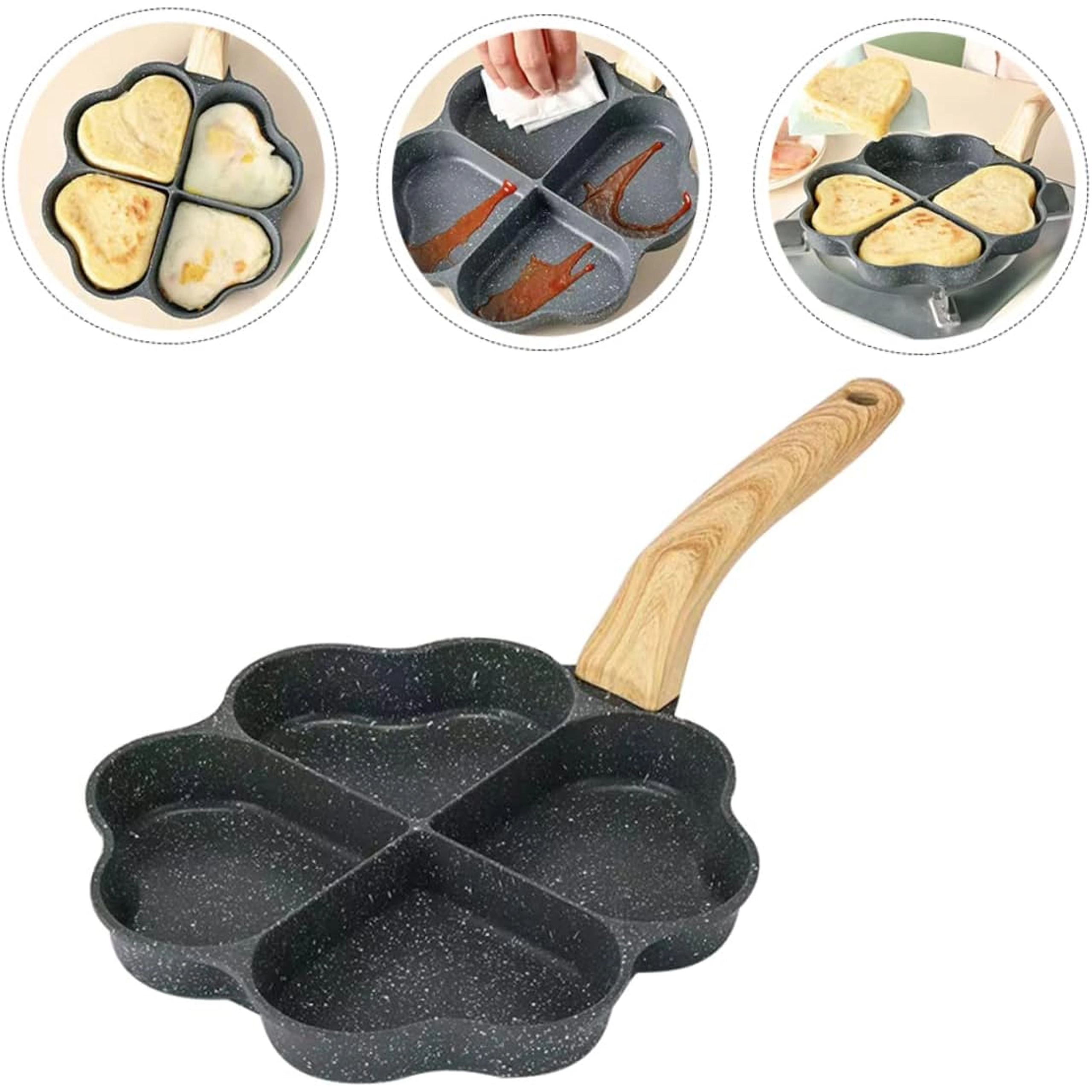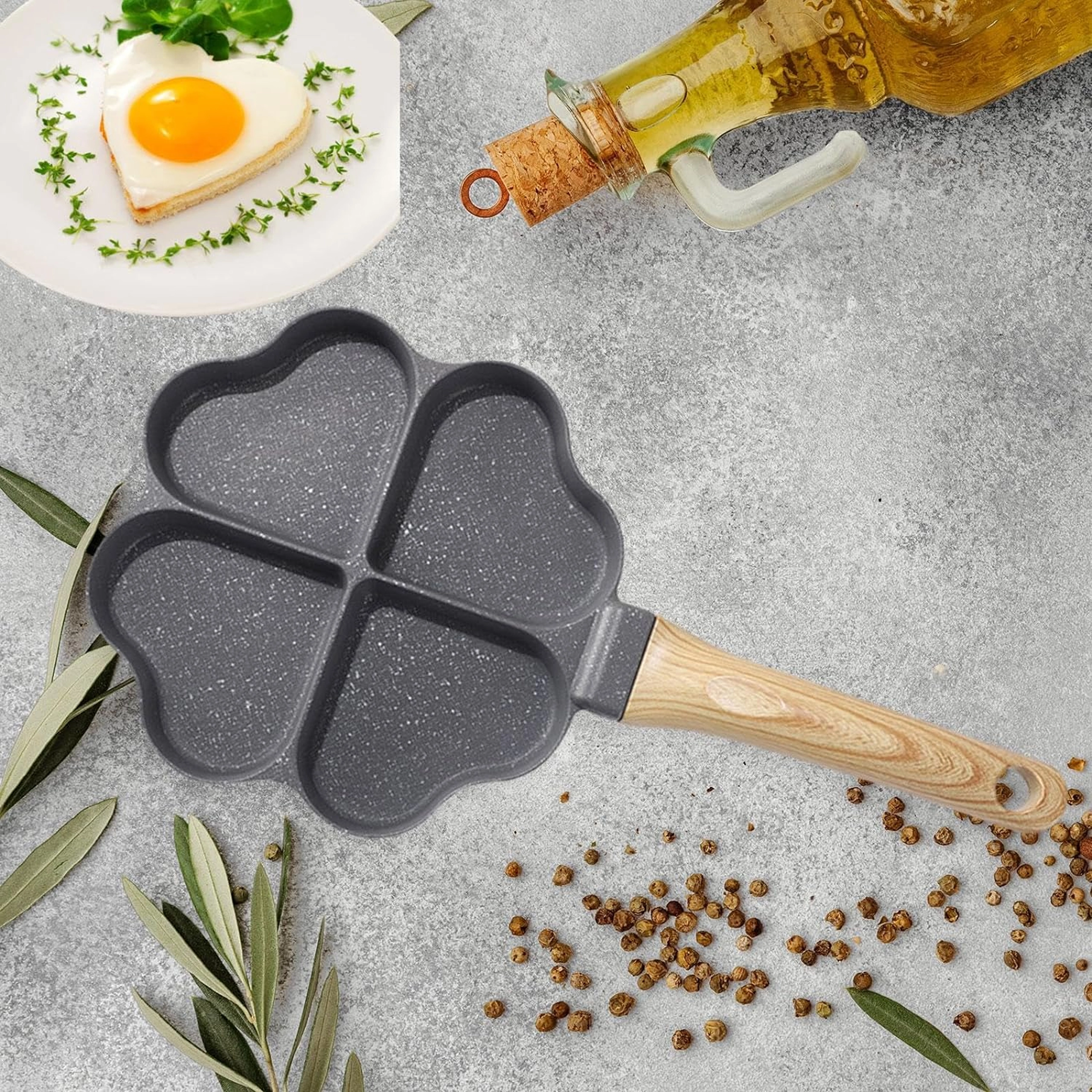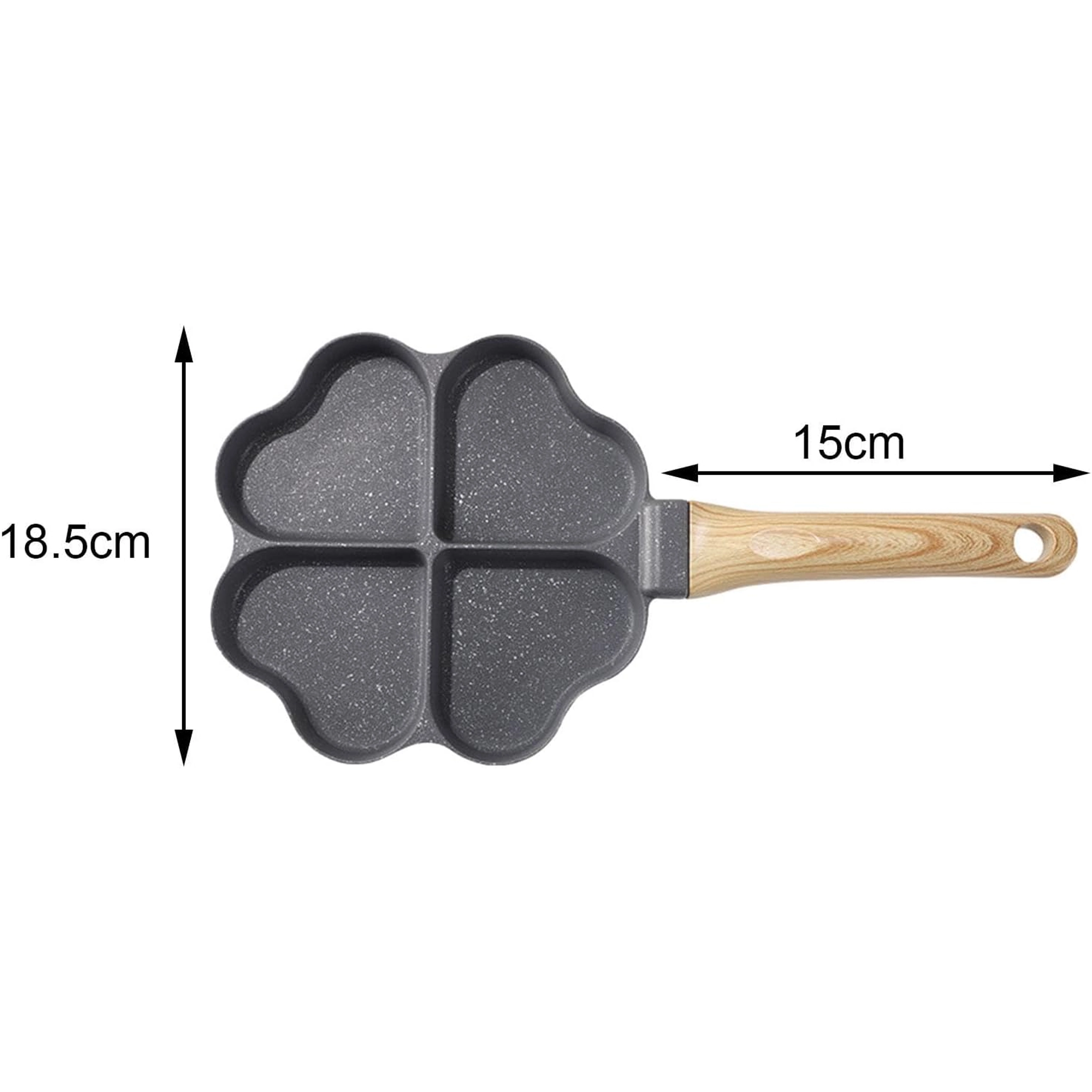 Questa padella a quattro scomparti con forme a cuore è ideale per preparare porzioni uniformi: pancake, uova, frittelle di patate o mini focaccine. Il rivestimento antiaderente e di facile pulizia garantisce una girata pulita e una manutenzione semplice, mentre le sezioni separate mantengono ogni porzione ben sagomata.