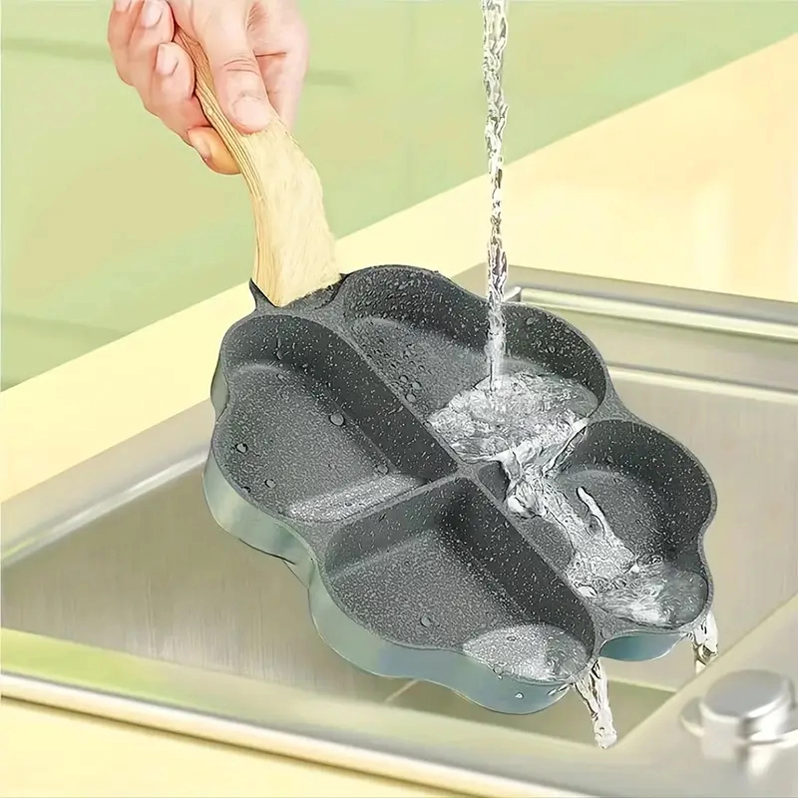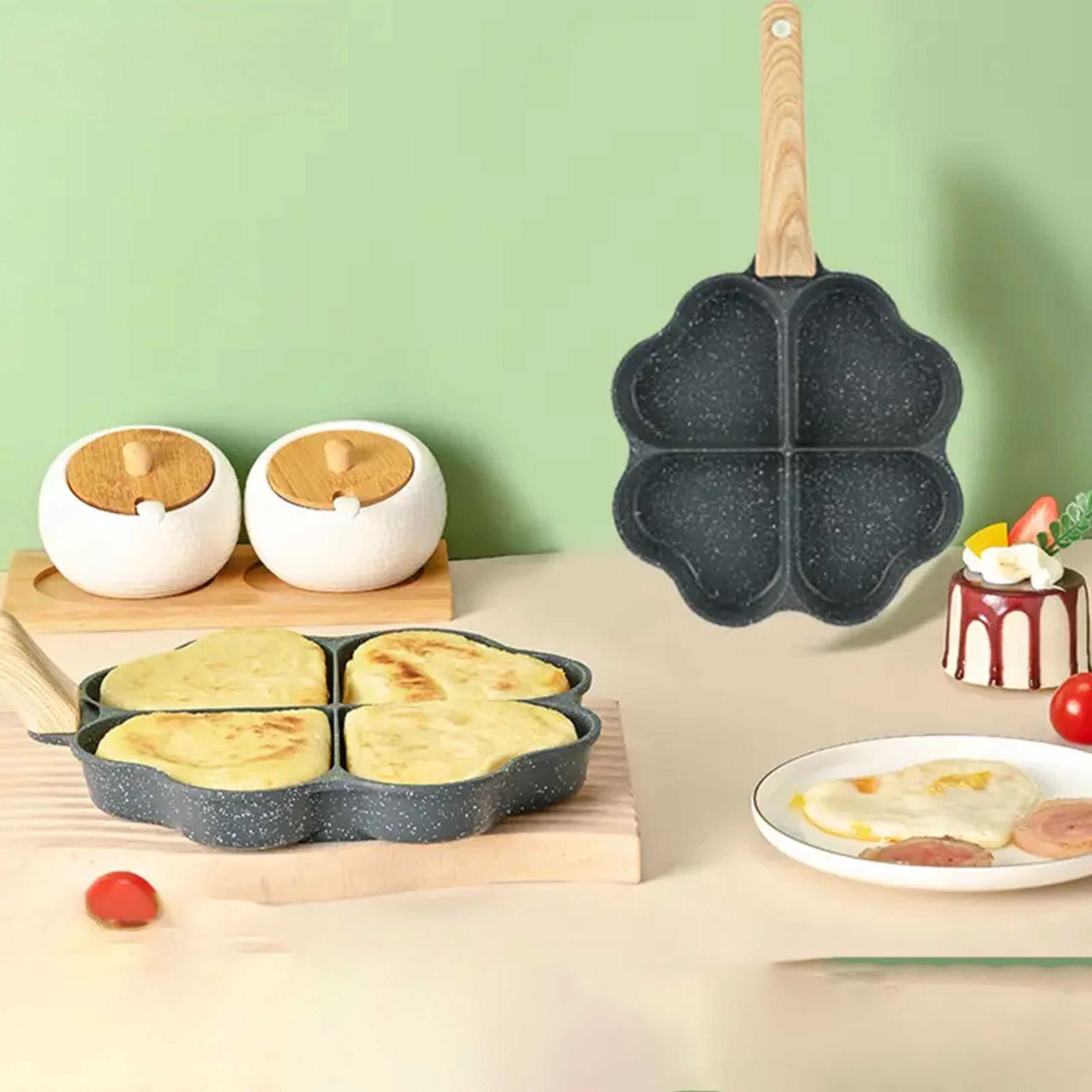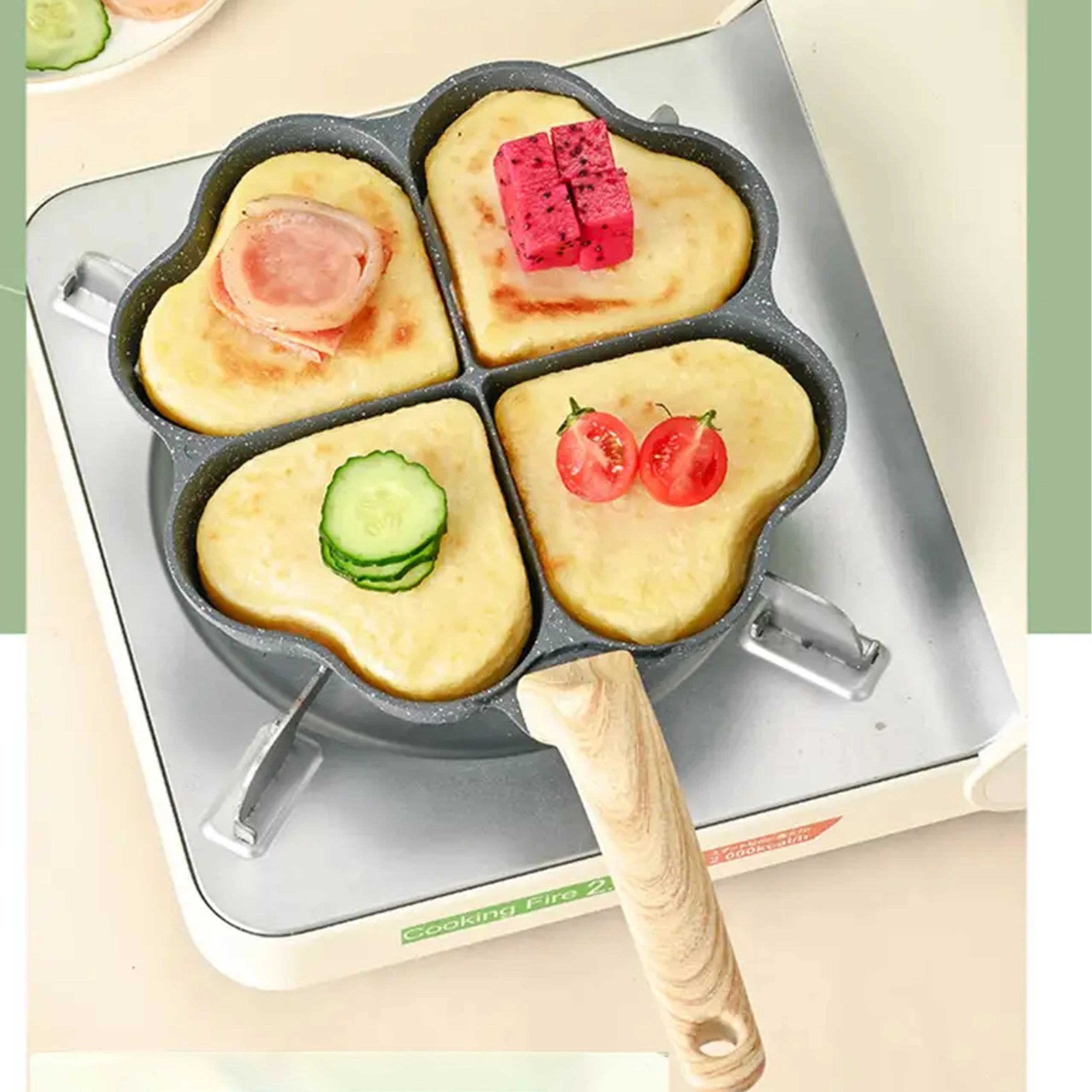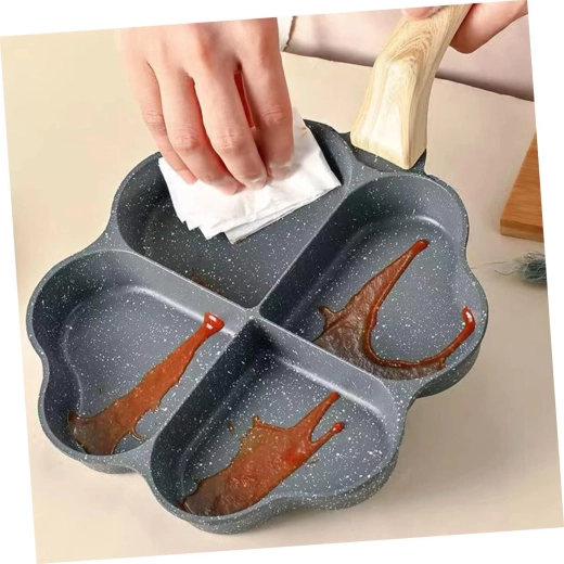 Questa padella a quattro scomparti con forme a cuore è ideale per preparare porzioni uniformi: pancake, uova, frittelle di patate o mini focaccine. Il rivestimento antiaderente e di facile pulizia garantisce una girata pulita e una manutenzione semplice, mentre le sezioni separate mantengono ogni porzione ben sagomata.