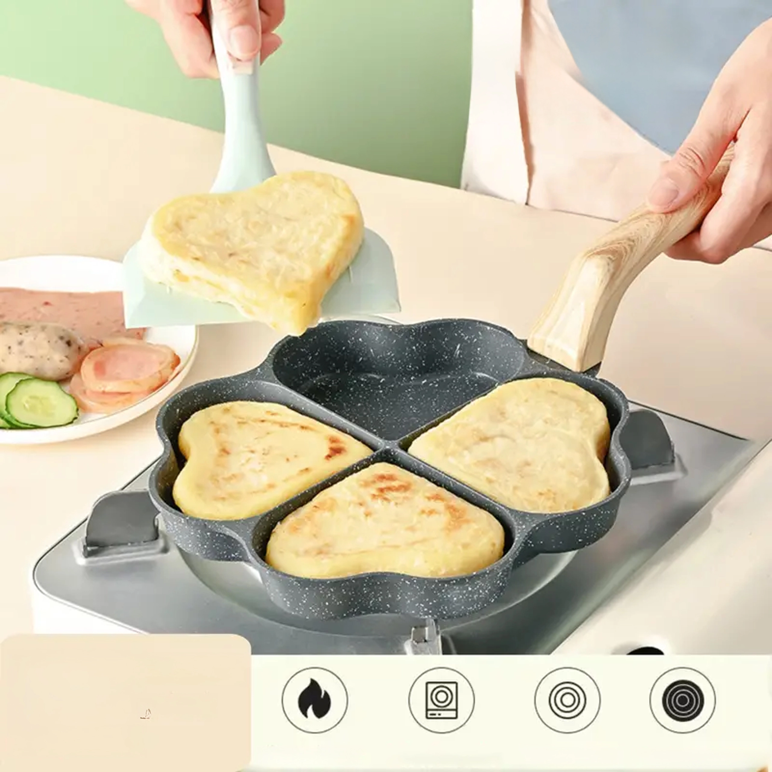 Padella per pancake e uova a cuoricini, compatibile con induzione