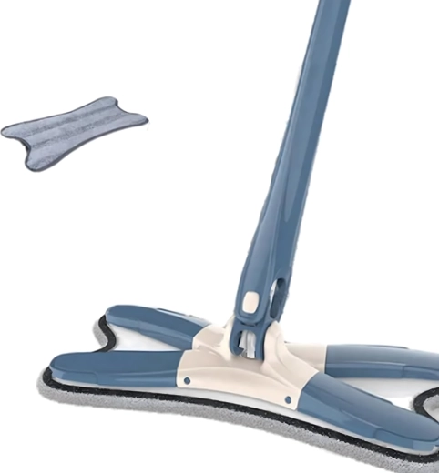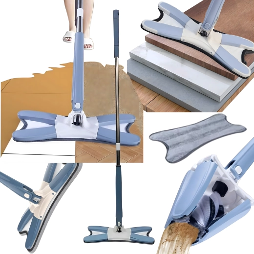 Mocio piatto con testa pieghevole a X e meccanismo auto-strizzante