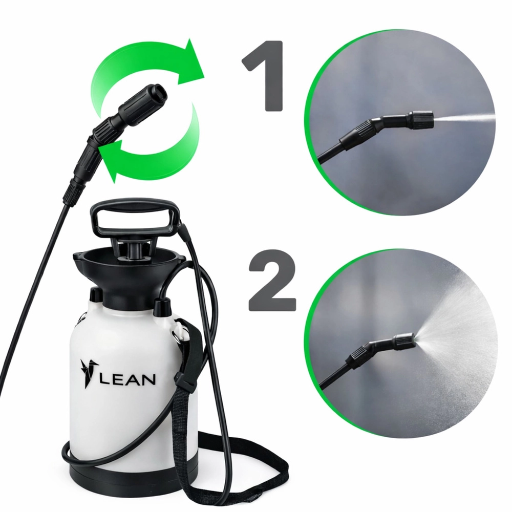 L'irroratore manuale a pressione LEAN con capacità di 3 litri è un aiutante affidabile per una nebulizzazione uniforme e parsimoniosa di acqua, fertilizzanti e prodotti per la protezione delle piante. Il design ergonomico con pompaggio manuale (su–giù) e ugello regolabile offre pieno controllo del flusso: da una fine nebbia per piante delicate fino a un getto concentrato per interventi precisi.