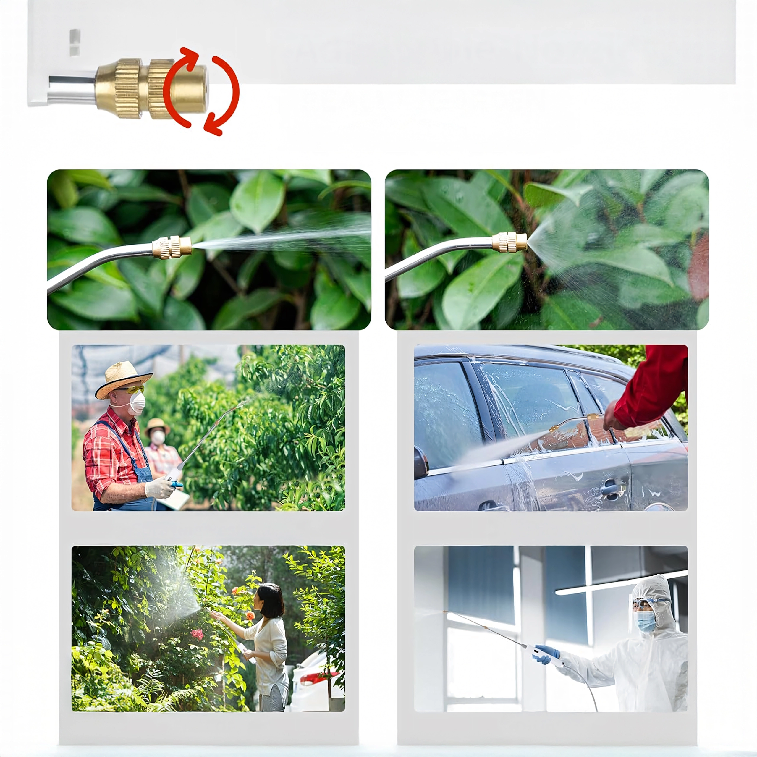 - Uso universale: annaffiatura, nebulizzazione, applicazione di fertilizzanti e trattamenti, pulizia e disinfezione.