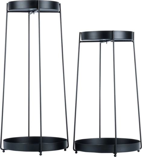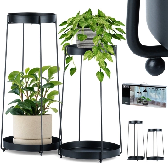 Il set comprende due supporti alti 46 e 58 cm con vassoi estraibili per facilitare la pulizia e lo spostamento delle piante. Grazie alla struttura in metallo stabile sostiene in sicurezza la maggior parte dei vasi comuni, ed è adatto anche a decorazioni e piccoli accessori.