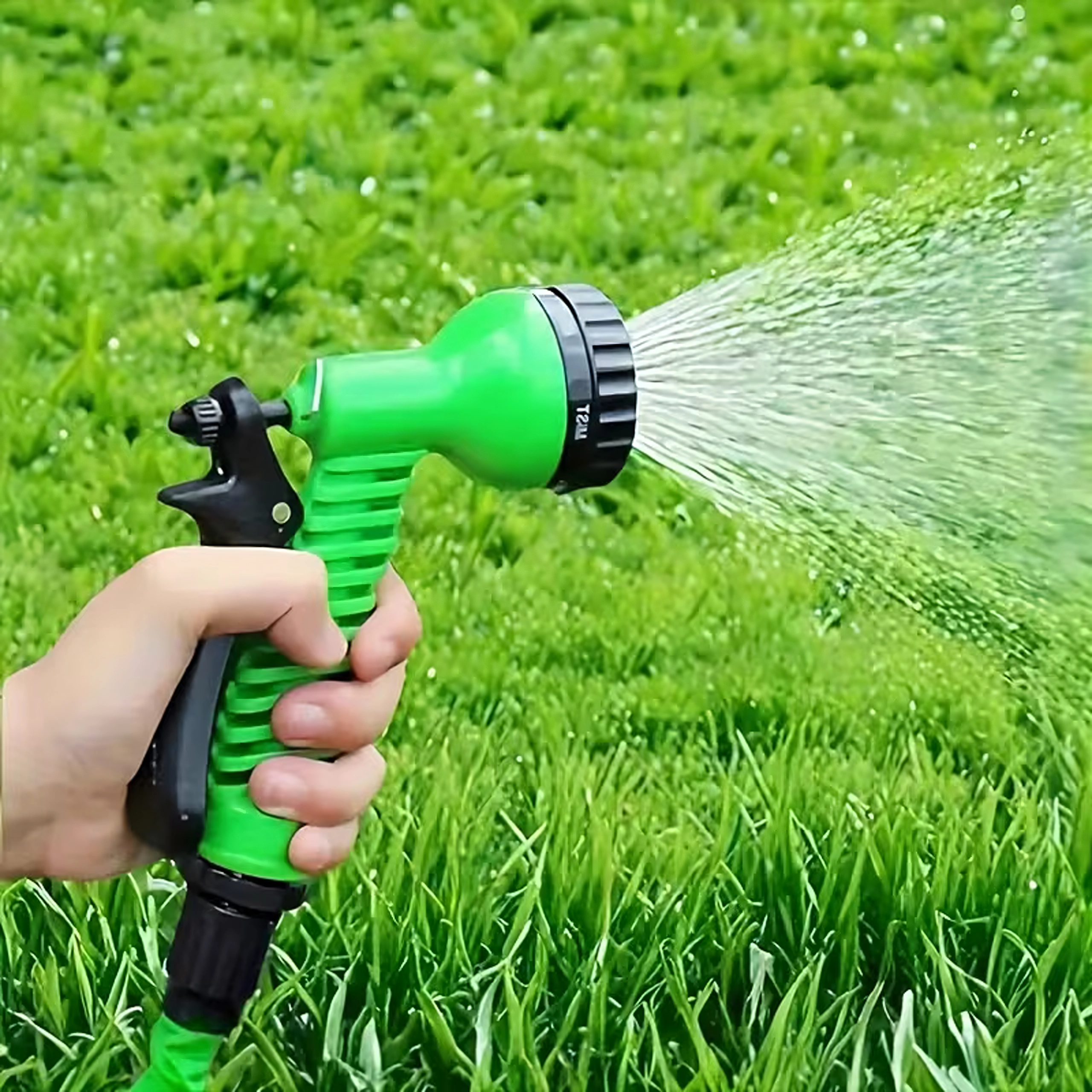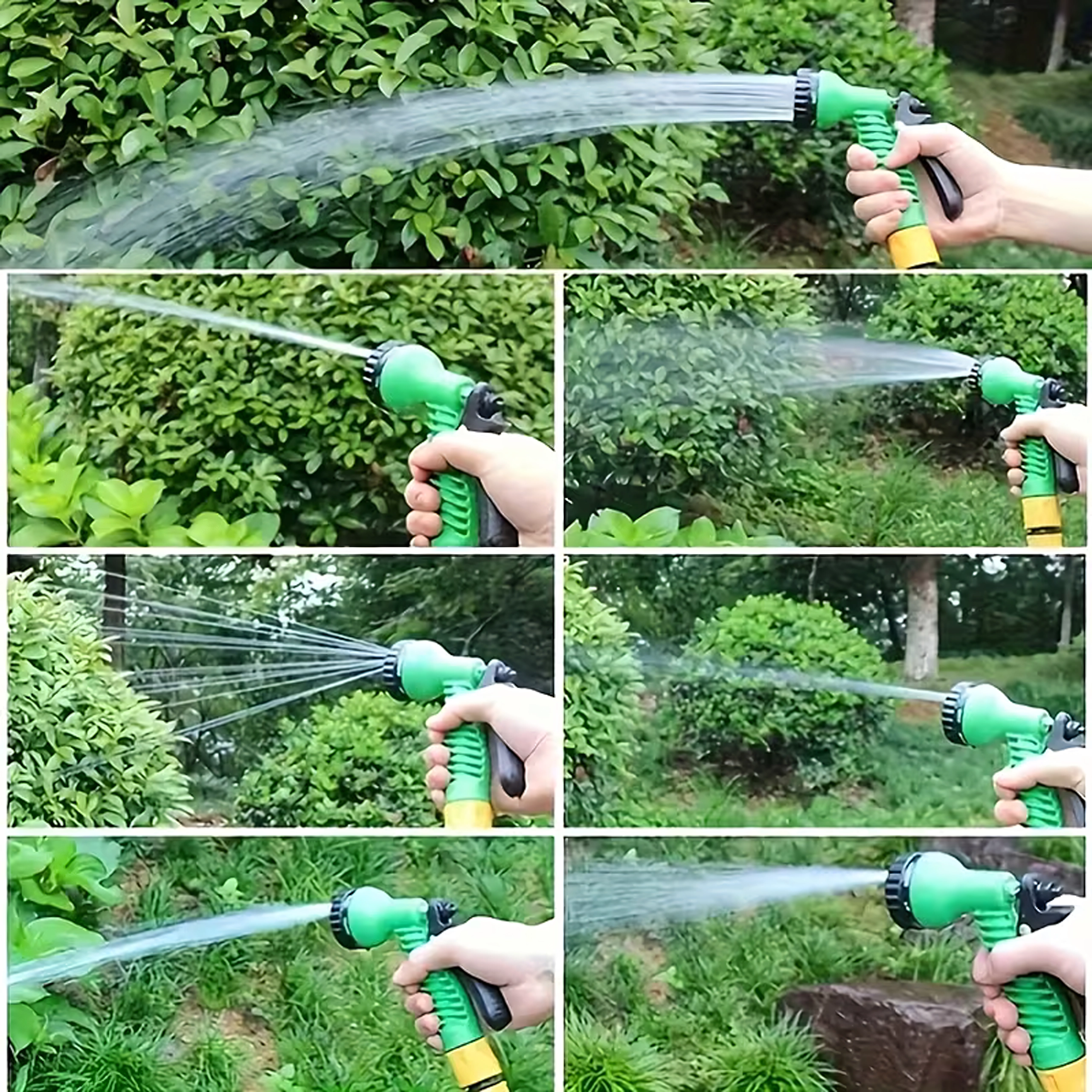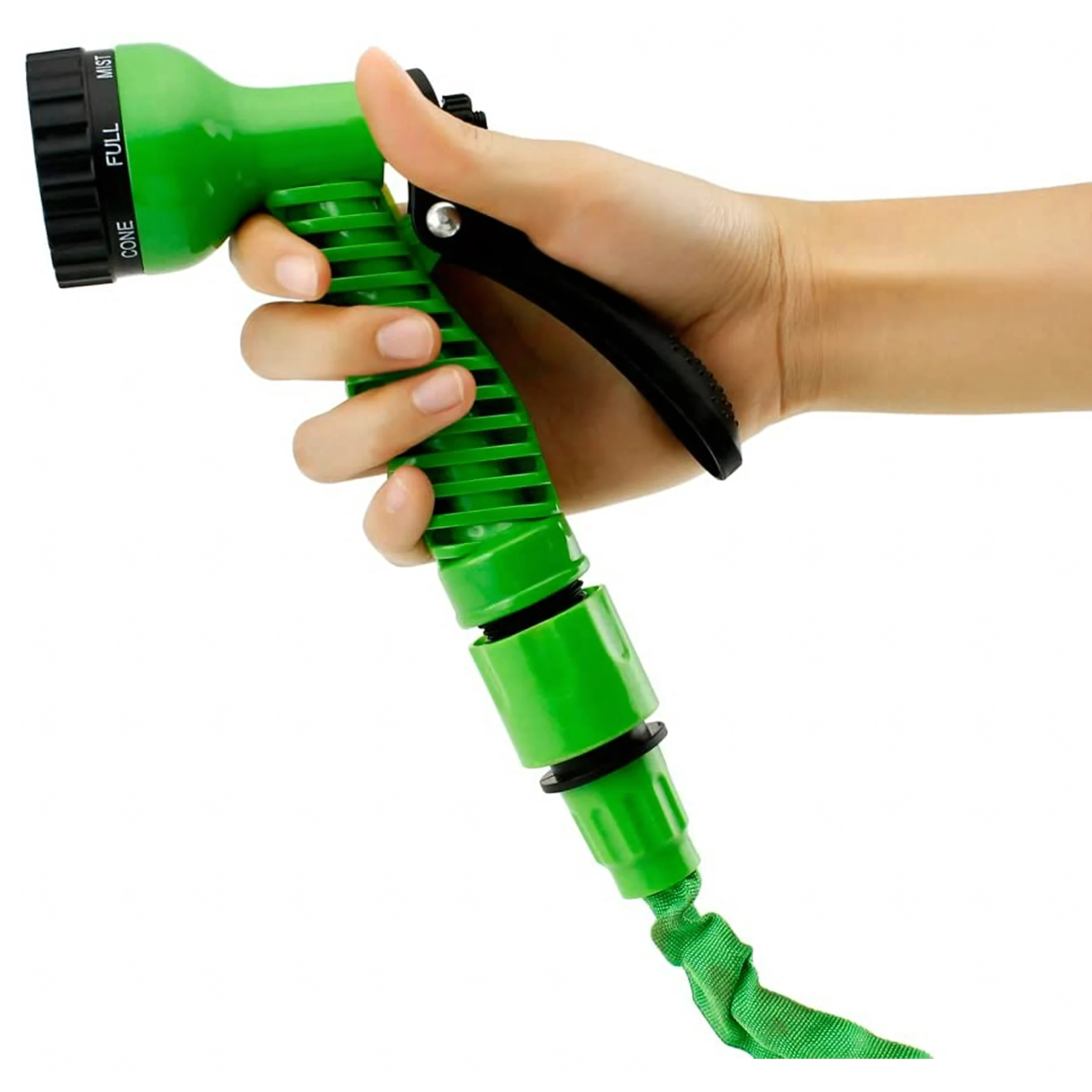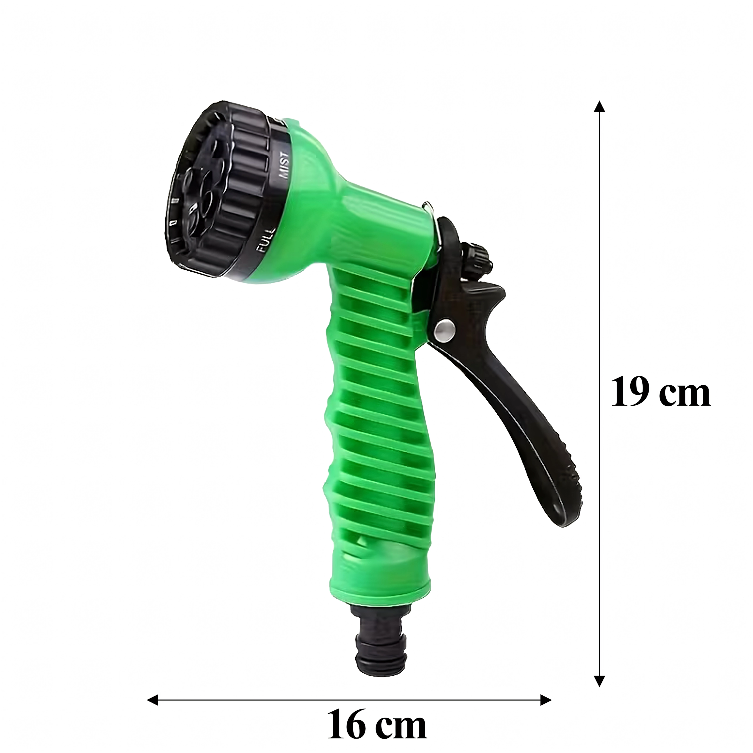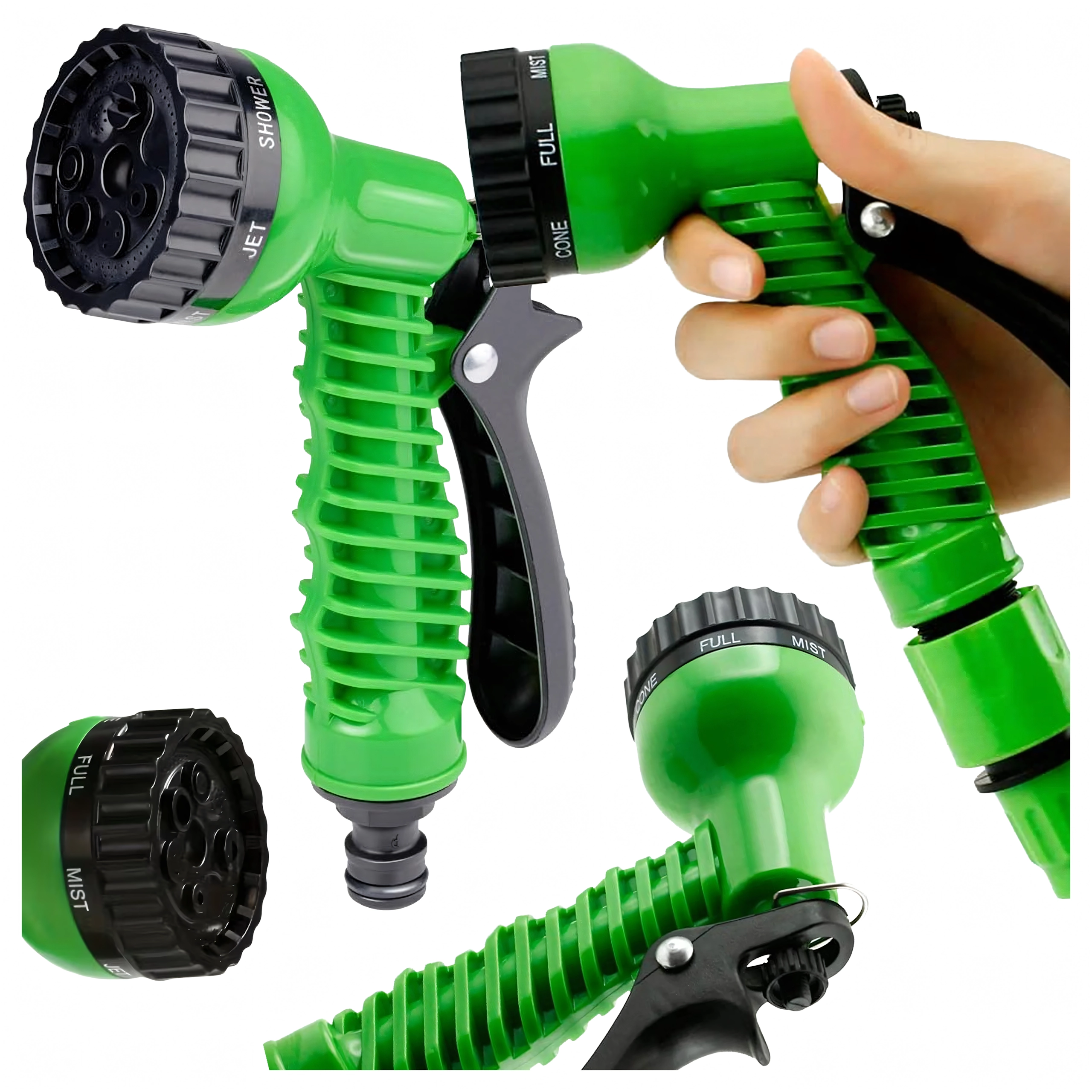 Pistola irrigatrice universale da giardino con impugnatura ergonomica e testina girevole che offre fino a 6 modalità di getto (Jet, Shower, Mist, Cone, Full ecc.). Grazie al grilletto a leva e alla presa antiscivolo confortevole regoli facilmente il flusso e la forma del getto per annaffiare fiori e prato, lavare l’auto o pulire il terrazzo. Compatibile con attacco rapido standard per tubi da giardino.