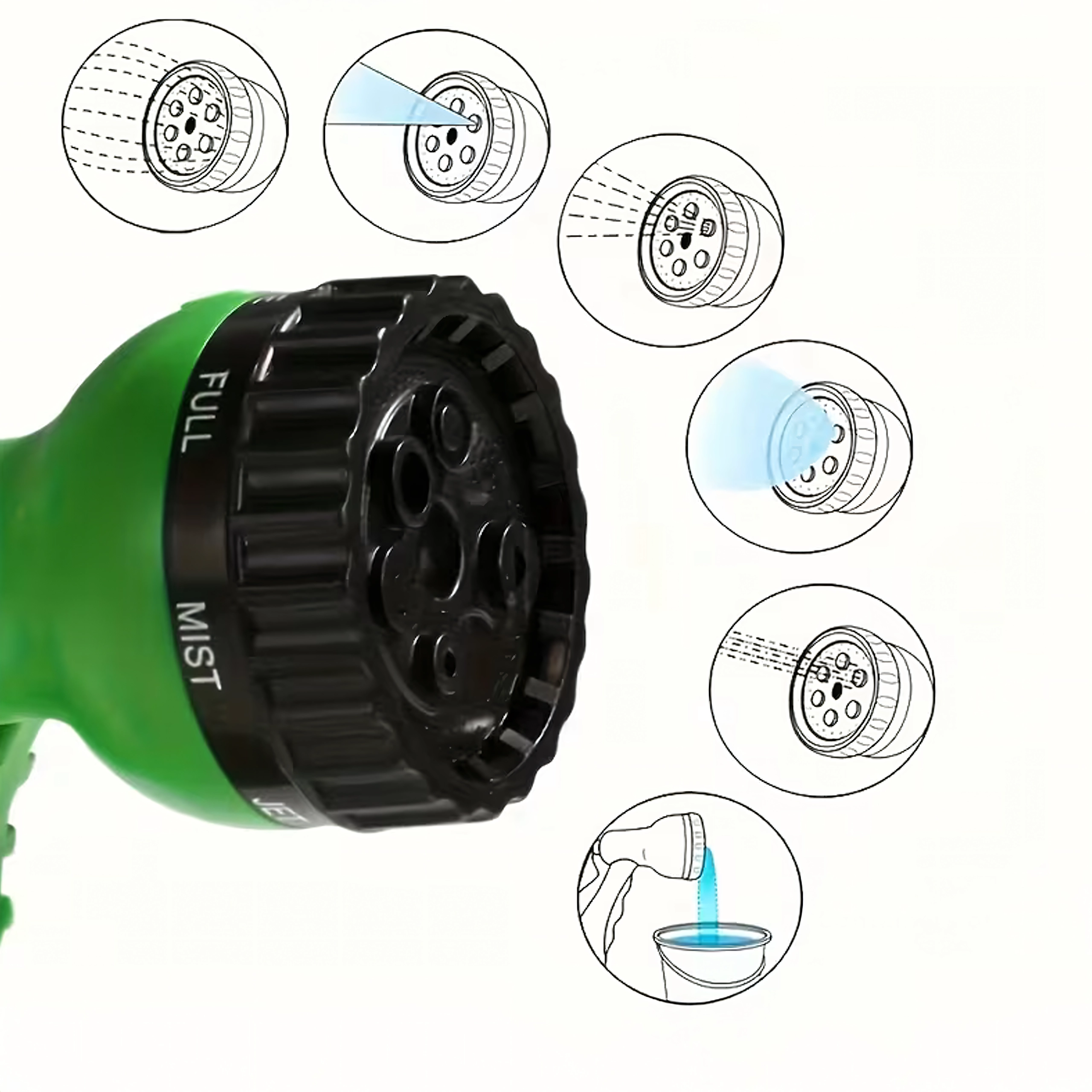 - 6 modalità regolabili di spruzzo: da nebulizzazione fine a getto concentrato