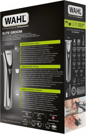 ELITE GROOM è un moderno regolatore multifunzione progettato per una cura rapida e precisa di capelli, barba e peli del corpo. Grazie alla lama a T crei linee pulite e contorni netti, mentre gli accessori intercambiabili coprono tutto: dalla modellazione di dettaglio alle finiture lisce.