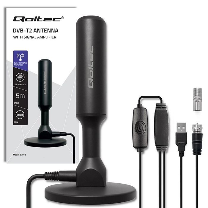 Alimentazione direttamente dalla TV o dal set-top box via USB. Il connettore F-Male è compatibile con la maggior parte dei tuner e televisori DVB-T/T2.