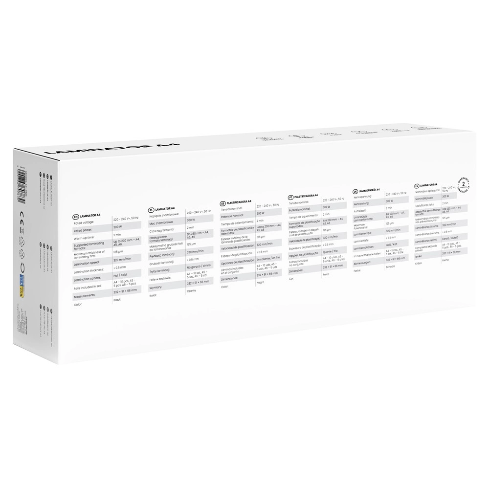 Il dispositivo si riscalda in soli 2 minuti e lamina a una velocità fino a 320 mm/min: un foglio A4 standard è pronto in meno di un minuto. La potenza stabile di 300 W aiuta a mantenere la temperatura ottimale per un’unione di qualità senza bolle. L’ampia apertura di 230 mm facilita il lavoro con i formati A4, A5 e A6.