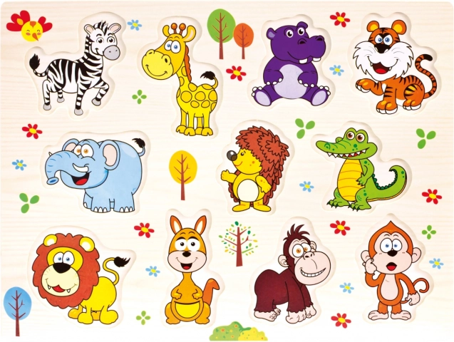 Questo grande puzzle in legno con animali del safari entusiasmerà i piccoli esploratori. I pezzi colorati ad incastro sono facili da afferrare e aiutano i bambini ad allenare le abilità motorie e il ragionamento logico. La stabile tavola in legno mantiene la forma e assicura un montaggio confortevole.