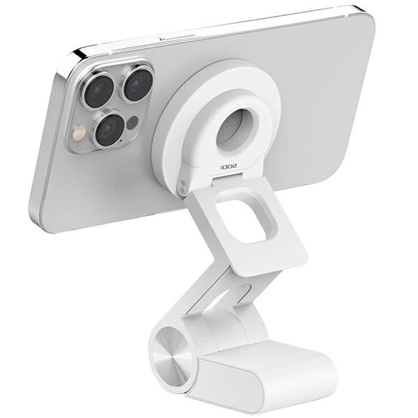 Grazie al posizionamento preciso del telefono, le lenti della fotocamera possono riprendere l’area di lavoro e durante le conferenze è quindi facile condividere appunti e documenti. La piastra magnetica è sostituibile con il caricatore wireless MagSafe originale, ottenendo una ricarica pulita e stabile senza cavi.