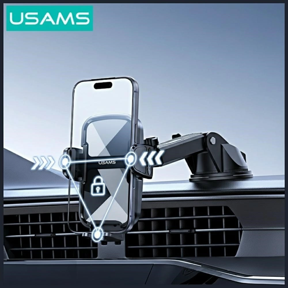 Il pratico e stabile supporto auto USAMS per montaggio su parabrezza o cruscotto garantisce fissaggio sicuro dello smartphone, presa salda grazie alla potente ventosa e regolazione semplice dell’angolo per una navigazione comoda e chiamate in vivavoce.
