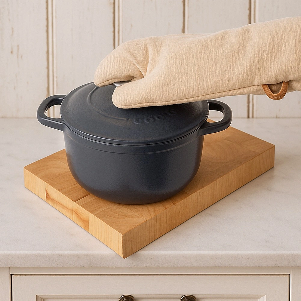 Il magnete integrato permette di fissare la presina alle superfici metalliche: sarà sempre a portata di mano quando estrai una teglia calda o sollevi un coperchio.
