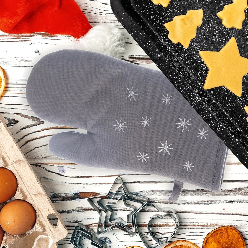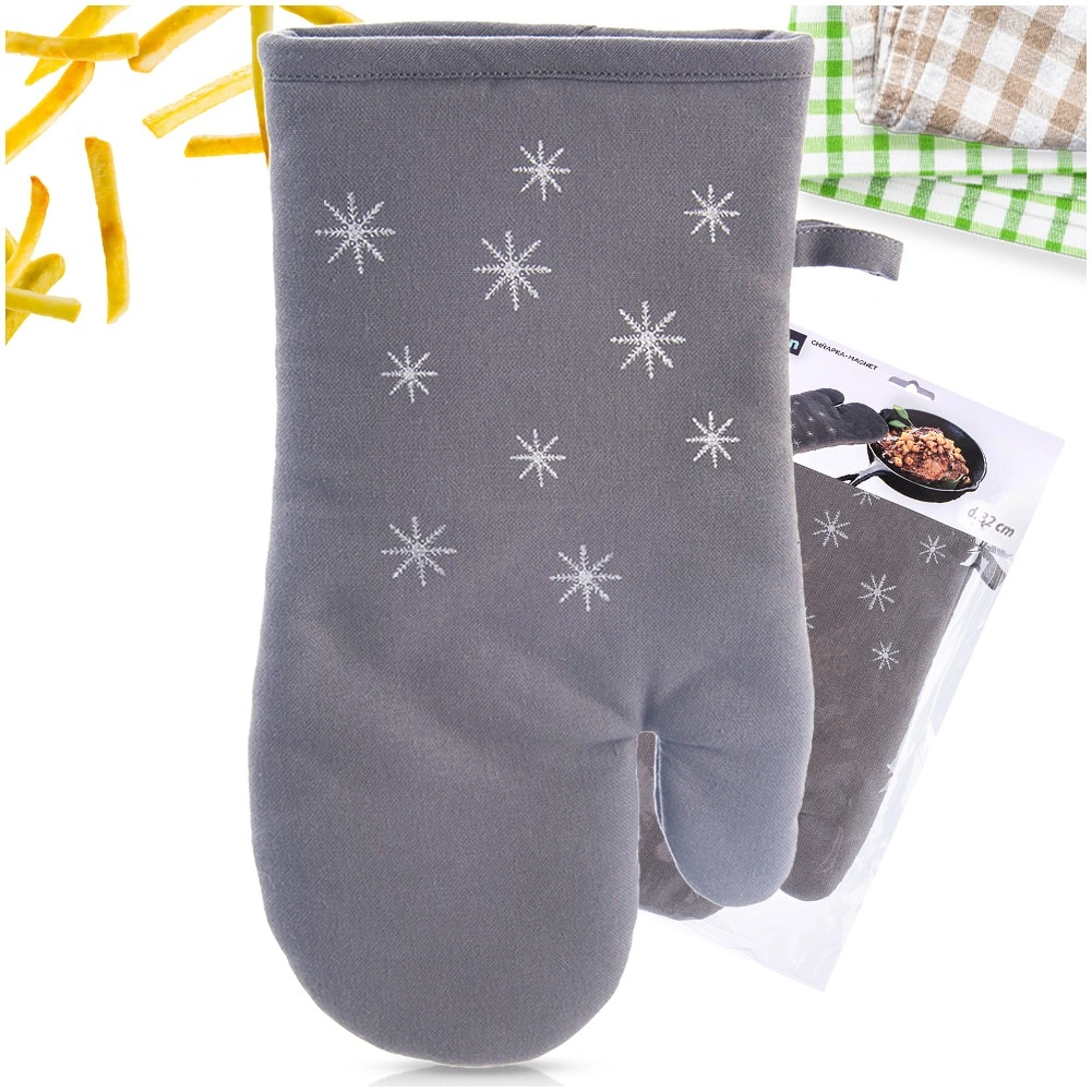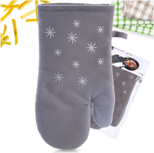 Presina in cotone dal design elegante e funzionale con delicato motivo di fiocchi di neve che protegge le mani durante la manipolazione di teglie, stoviglie e pirofile calde. La morbida imbottitura e la copertura completa della mano garantiscono una presa sicura e comfort nella cucina di ogni giorno.