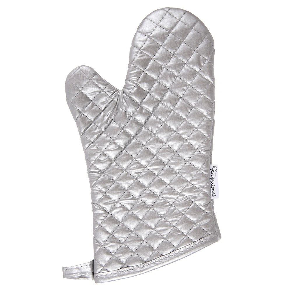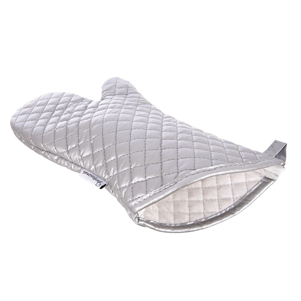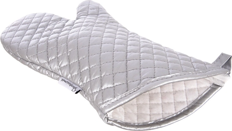 Questo guanto in cotone color argento, dimensioni 18 × 33 cm, è progettato per una manipolazione sicura di teglie, pirofile e pentole calde. La finitura esterna acrilica respinge sporco e umidità, mentre l’imbottitura morbida con trapuntatura garantisce affidabile isolamento termico e una presa sicura.