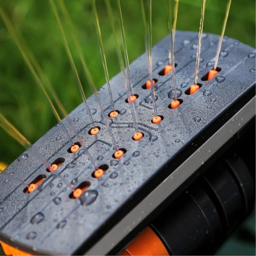 La testata con 16 ugelli genera più getti d'acqua uniformi che irrigano efficacemente ampie superfici senza ristagni.