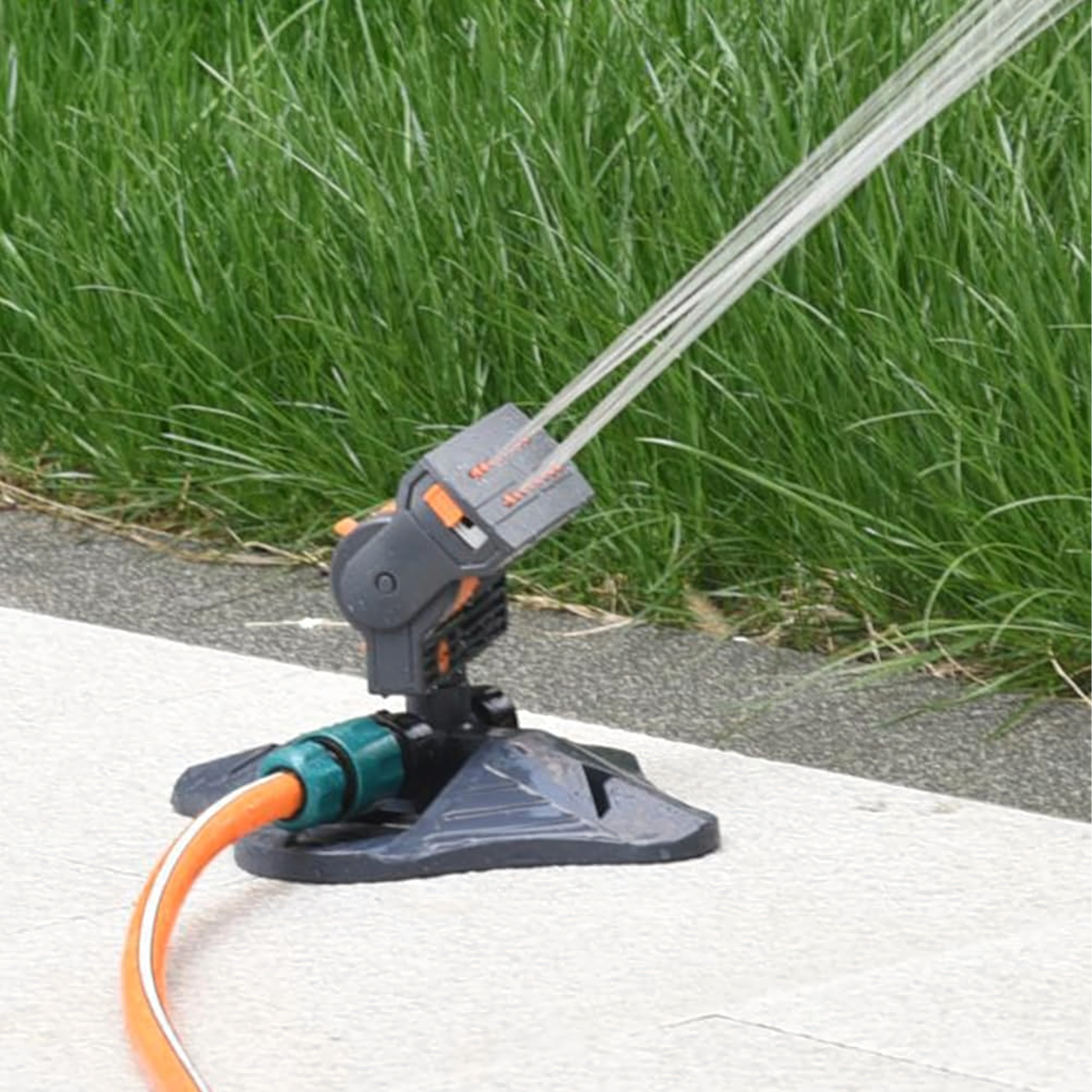 Una base robusta e stabile mantiene l'irrigatore in posizione anche con pressioni più elevate. Il connettore standard per tubi assicura un collegamento rapido senza attrezzi. Grazie ai comandi intuitivi, l'irrigatore è ideale per un'irrigazione regolare, uniforme e delicata sia di superfici grandi che piccole.