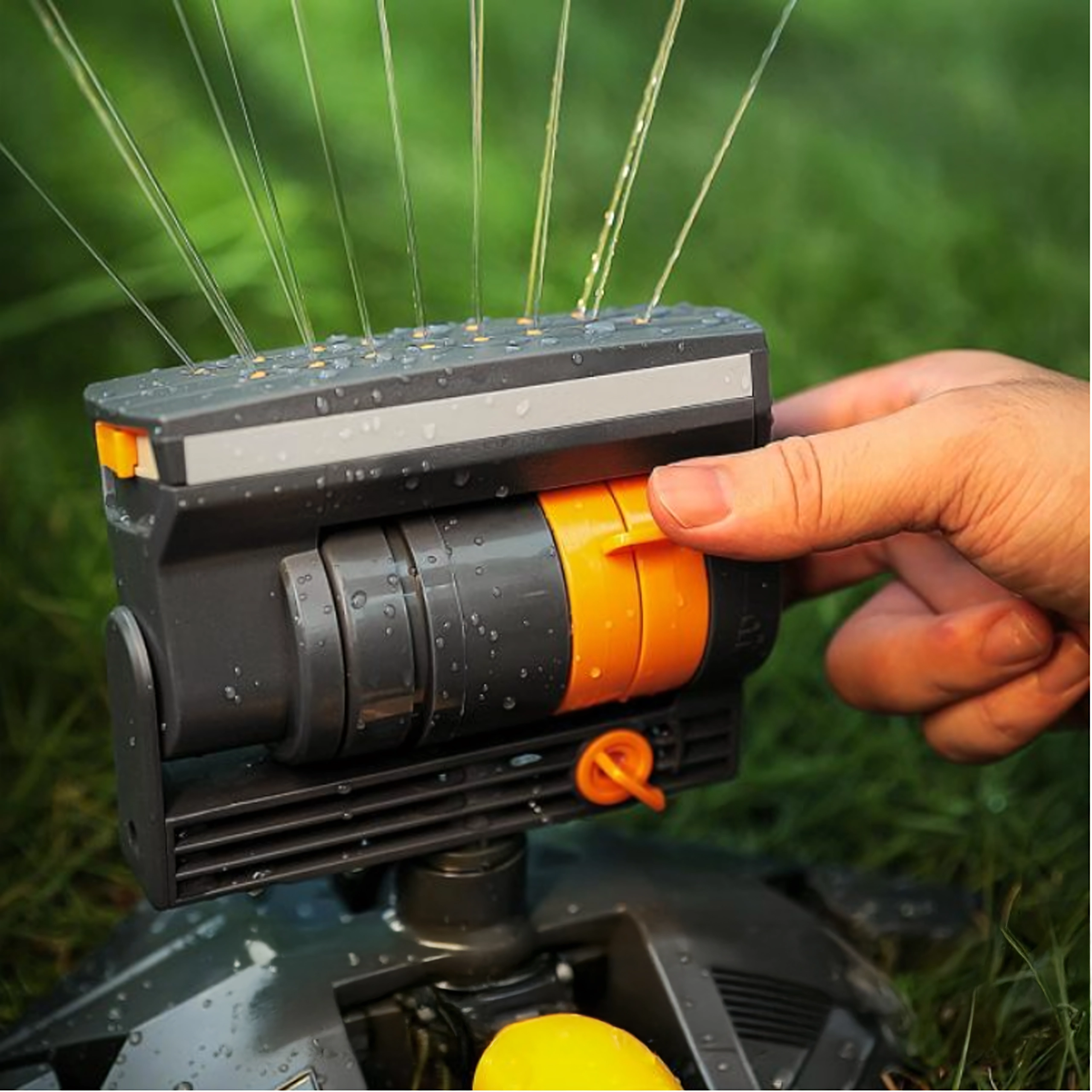 Con i comandi regoli facilmente larghezza, direzione e portata del getto per un puntamento preciso in base alla forma e alle dimensioni del giardino.