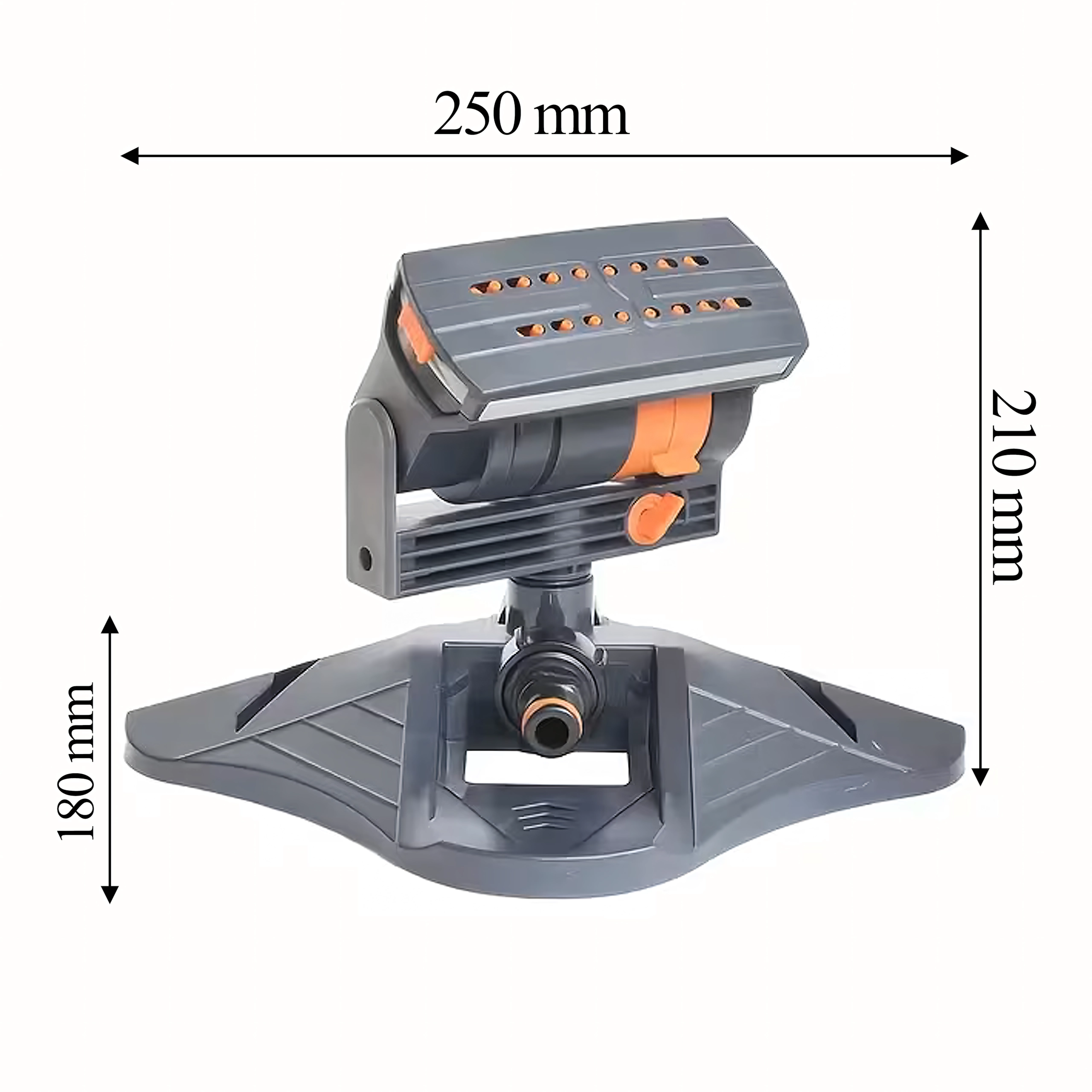Irriga in modo efficiente il tuo giardino con l'irrigatore oscillante che distribuisce l'acqua in modo uniforme tramite 16 ugelli di precisione. La testata regolabile consente di impostare direzione, angolo e larghezza del getto, così da adattare facilmente la copertura alle esigenze di prati, orti o aiuole fiorite.