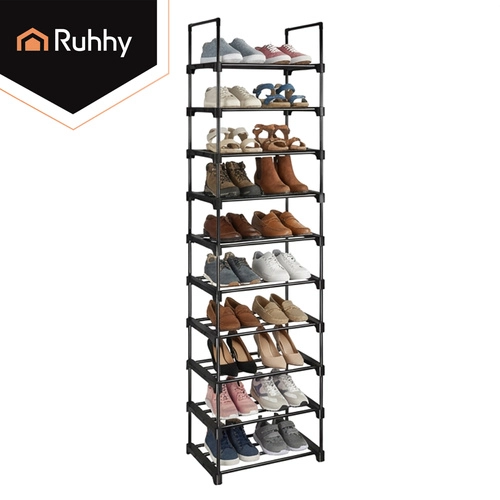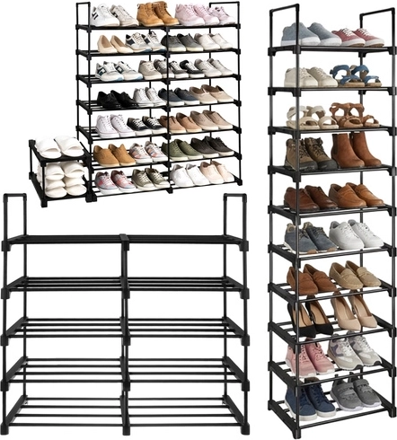 Dieci livelli offrono posto per tutta la famiglia. Il design stretto e alto fa risparmiare superficie a pavimento e mantiene le scarpe in ordine e a vista.
