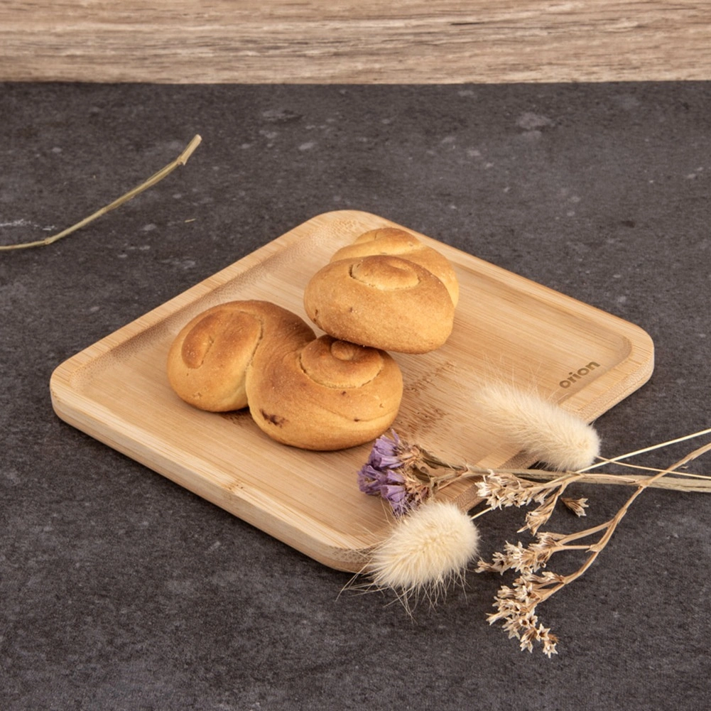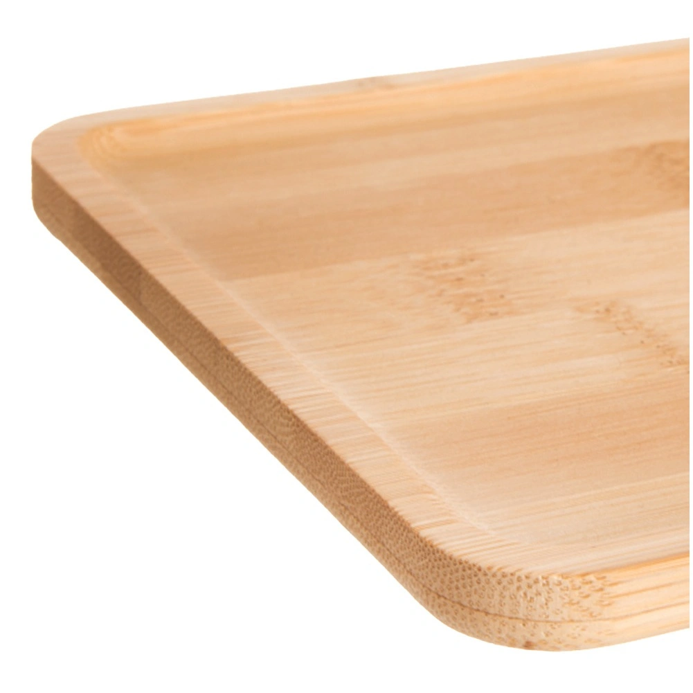 Grazie alle dimensioni compatte di 14 × 14 × 1,5 cm è ideale per tapas, formaggi, pane, dessert o come base stilosa per bicchieri, caraffa o candele. Il bambù è un materiale ecologico, resistente all'umidità e alle deformazioni, garantendo una lunga durata con la corretta manutenzione.