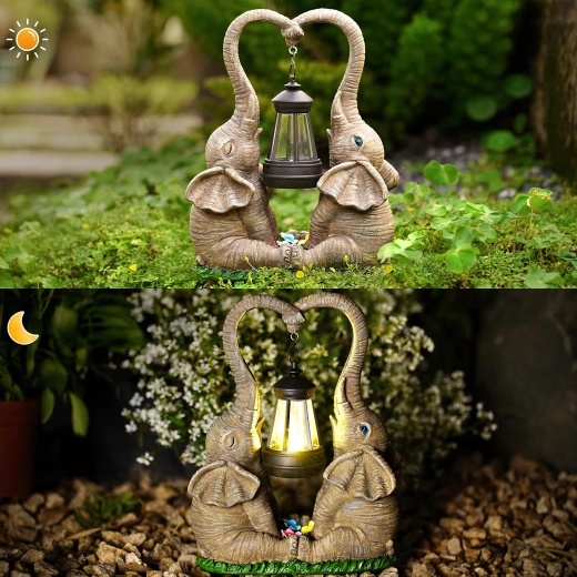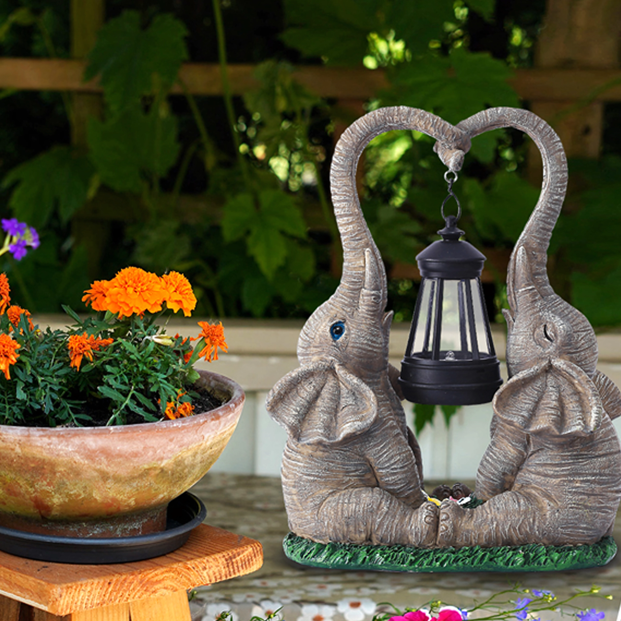 - Lampada da giardino decorativa / figurina di elefanti con lanterna